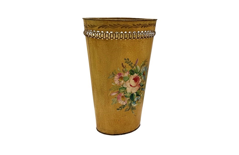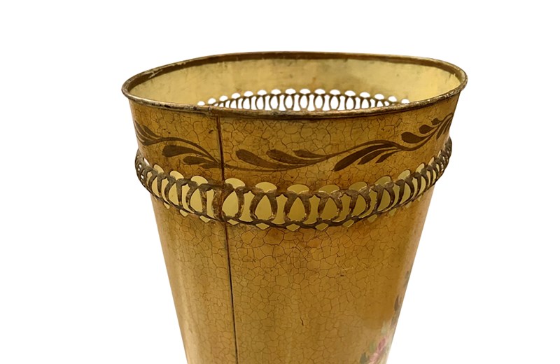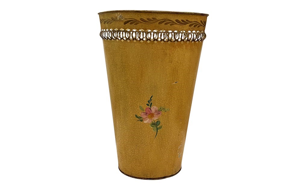 Tall early 20th Century toleware waste paper bin that works equally well as an umbrella or stick stand.