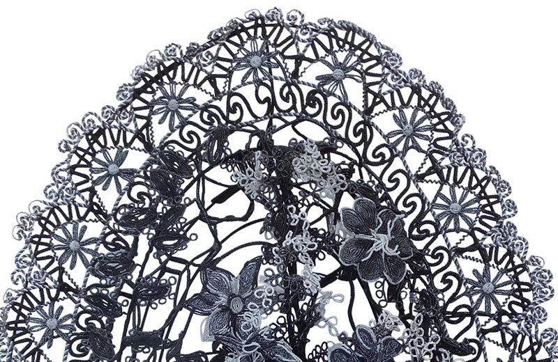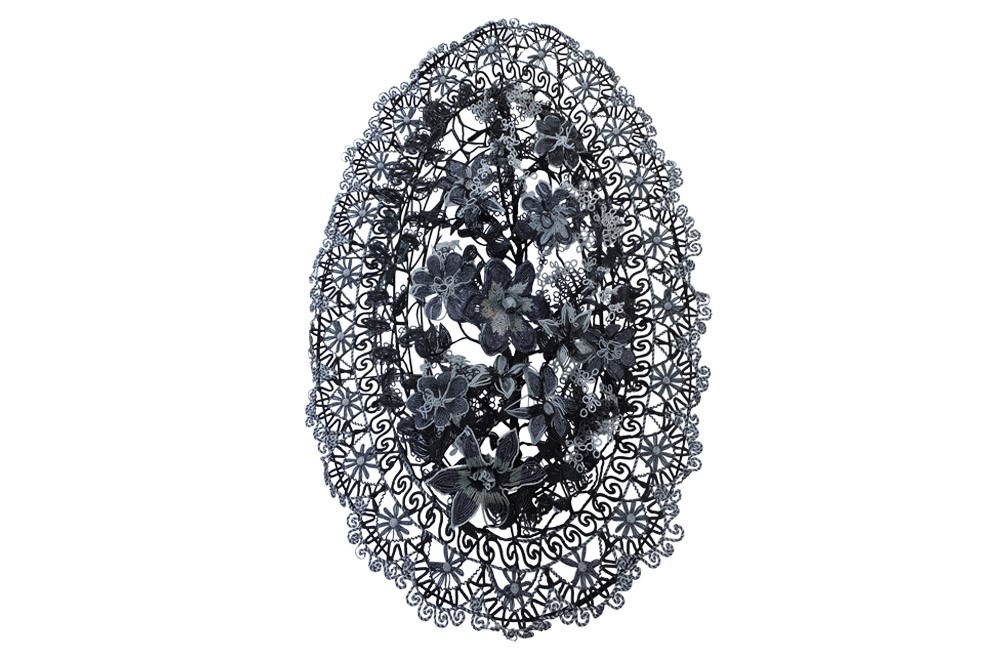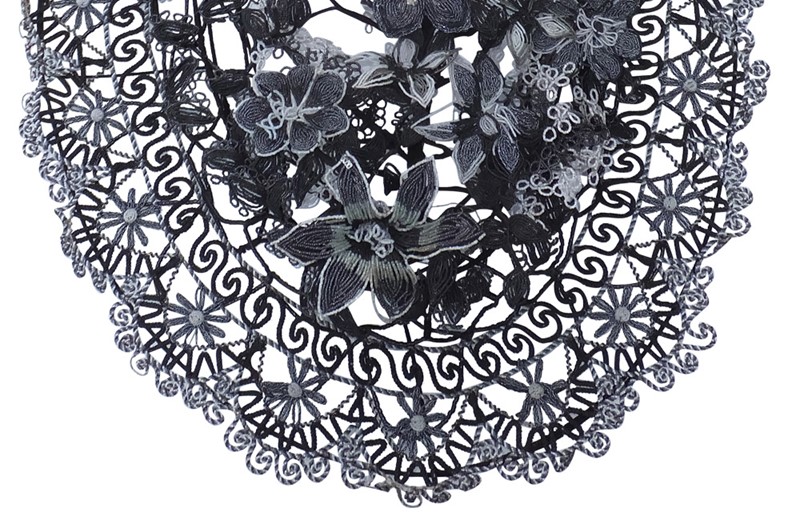 Beautiful, French decorative floral & foliage beadwork wall decoration with black, white & grey beads. An, exceptionally, intricate and ornate example.