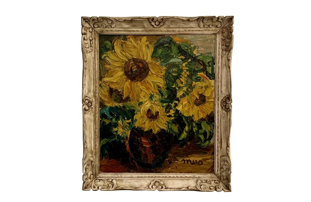 Large 20th Century French oil on canvas painting entitked 'Tournesols' (Sunflowers).
