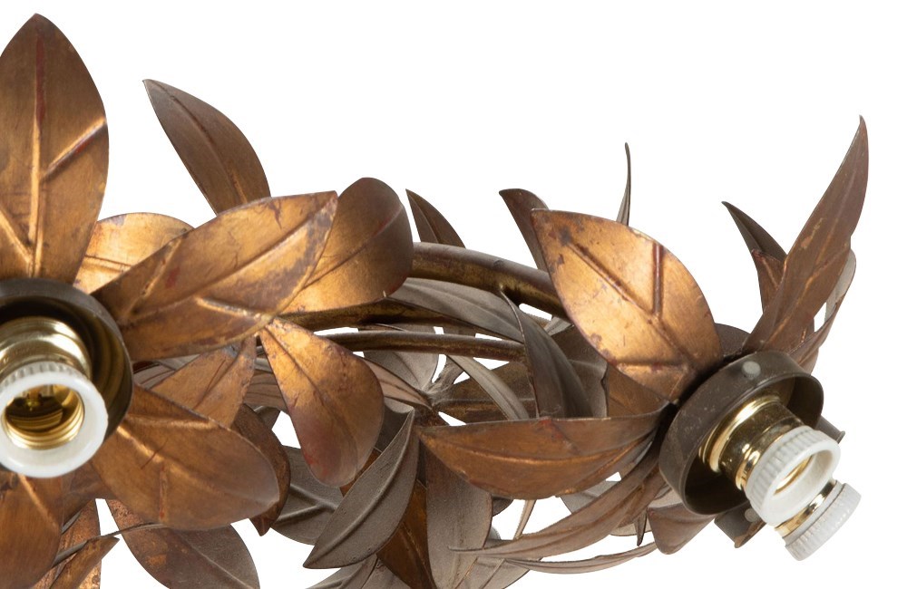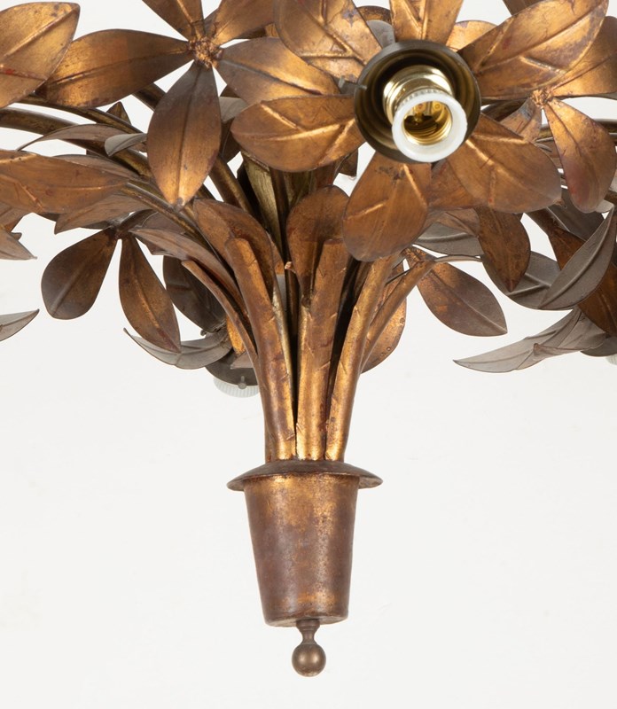 Large gilt metal Spanish hanging light with floral and foliate decoration.