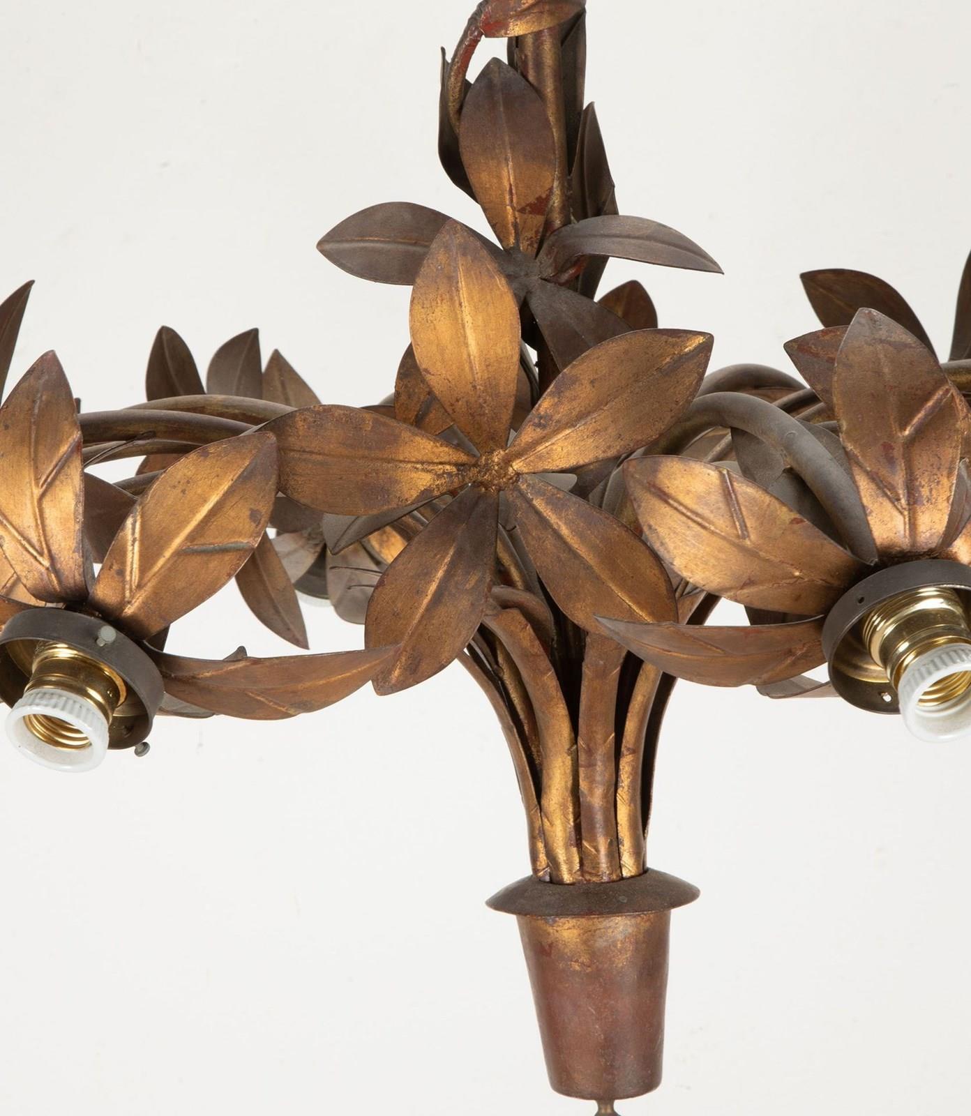 Large Mid-Century Spanish Gilt Metal Chandelier