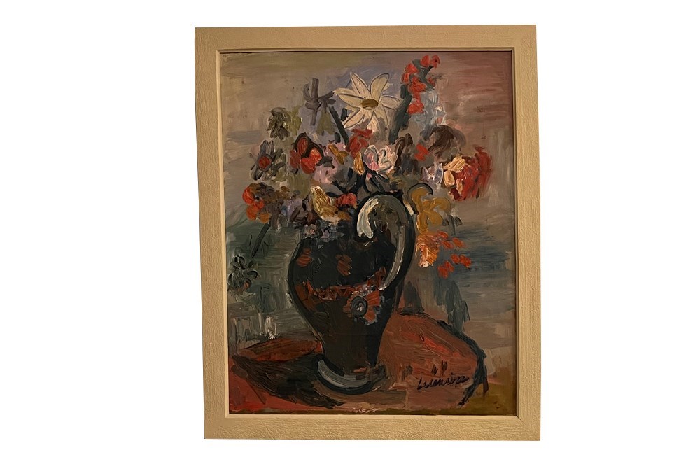 Large Mid-Century Still Life Painting 'Blue Jug Of Flowers'