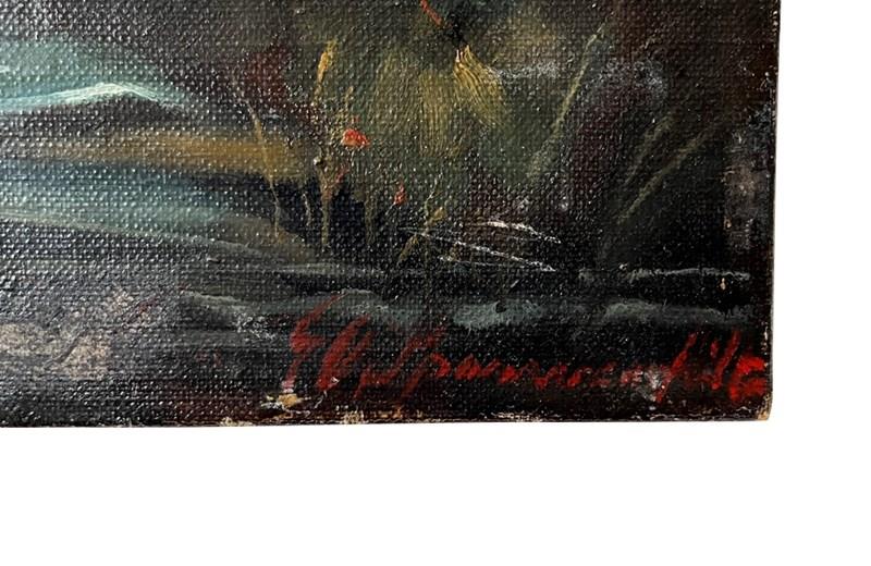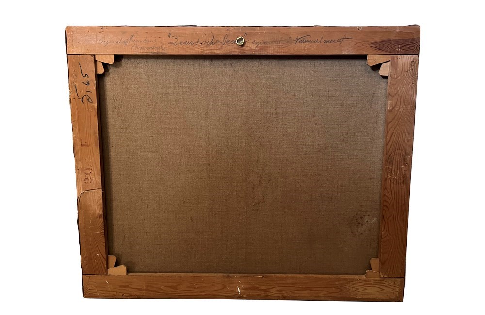 Unframed, signed oil on canvas painting depicting Leda and The Swan, after Boucher.