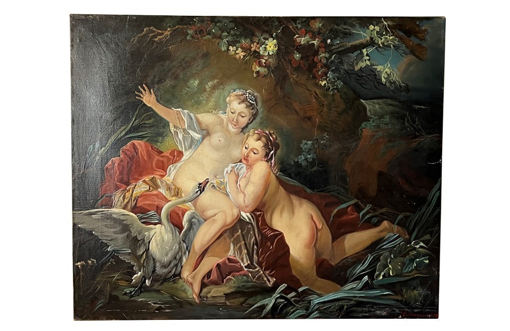 'Leda & The Swan' Oil On Canvas Painting After Boucher