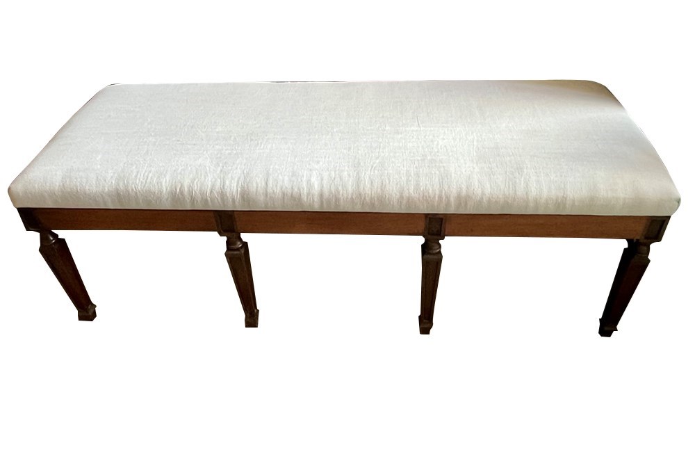 Long French 20Th Century Neo-Classical Revival Upholstered Bench