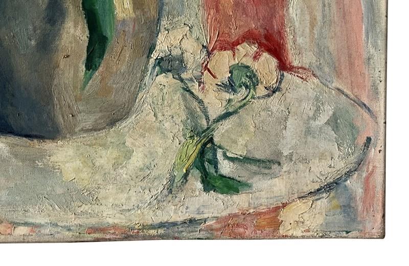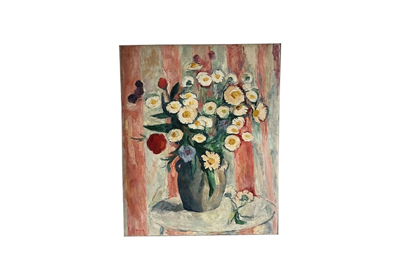 Both charming and painterly, the work exemplifies the enduring appeal of mid-century still life painting in the Post-Impressionist tradition. Oil on canvas. Signed lower left, unframed.