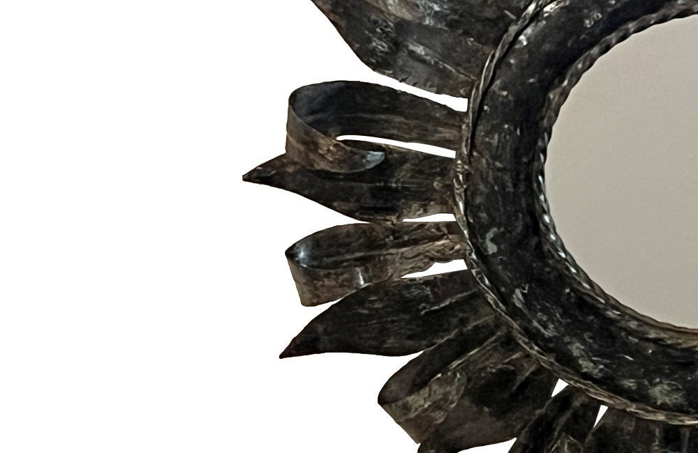 Mid-Century French Metal Sunburst Mirror