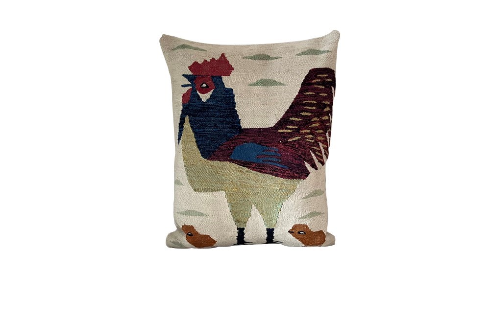 Mid Century French Tapestry Cushion 'Rooster & Chicks'
