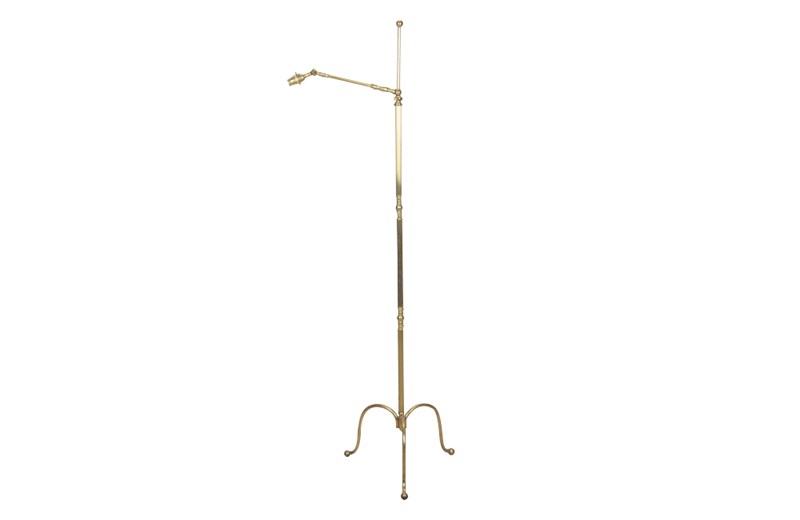 The reeded stem is tipped with a balled finial and terminates on raised curved tripod legs with balled feet. With an adjustable arm.