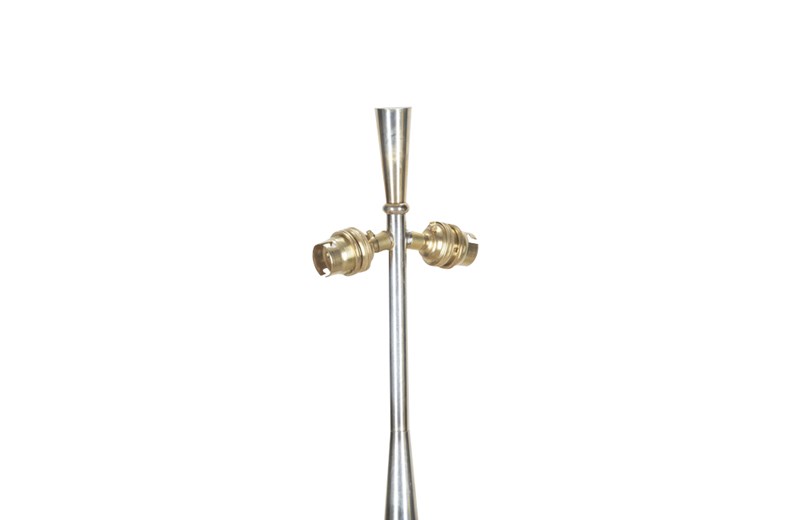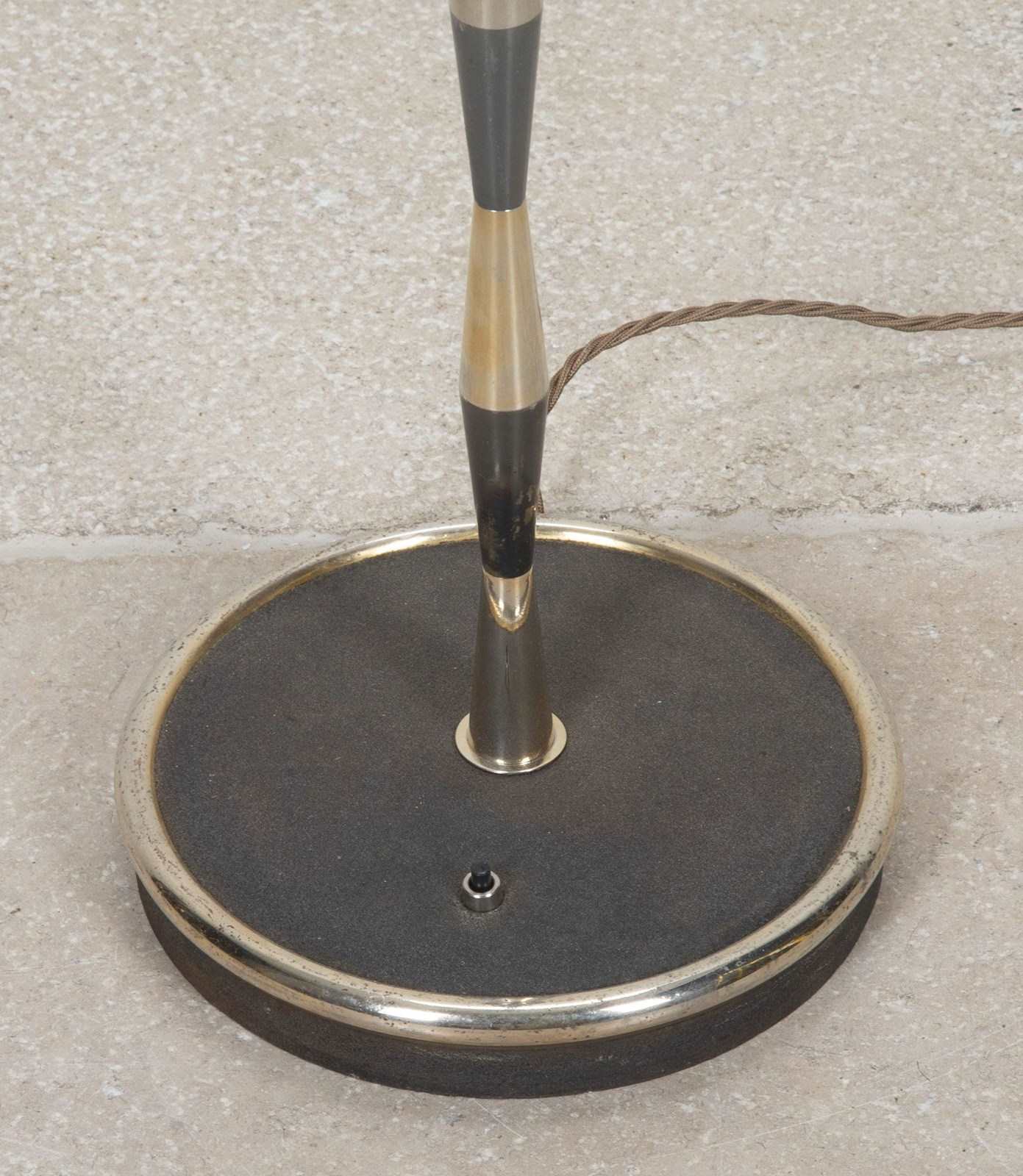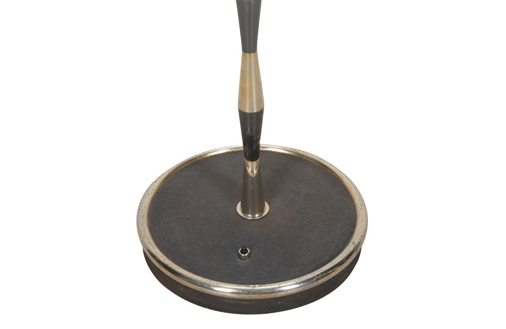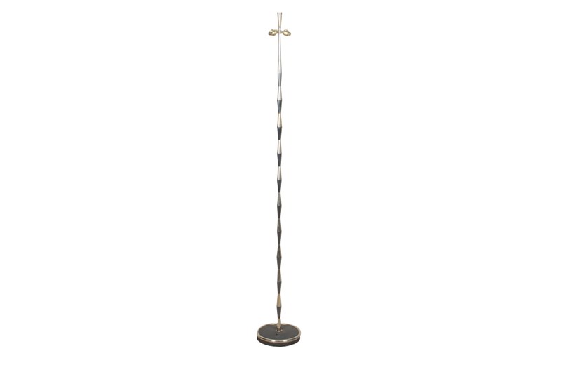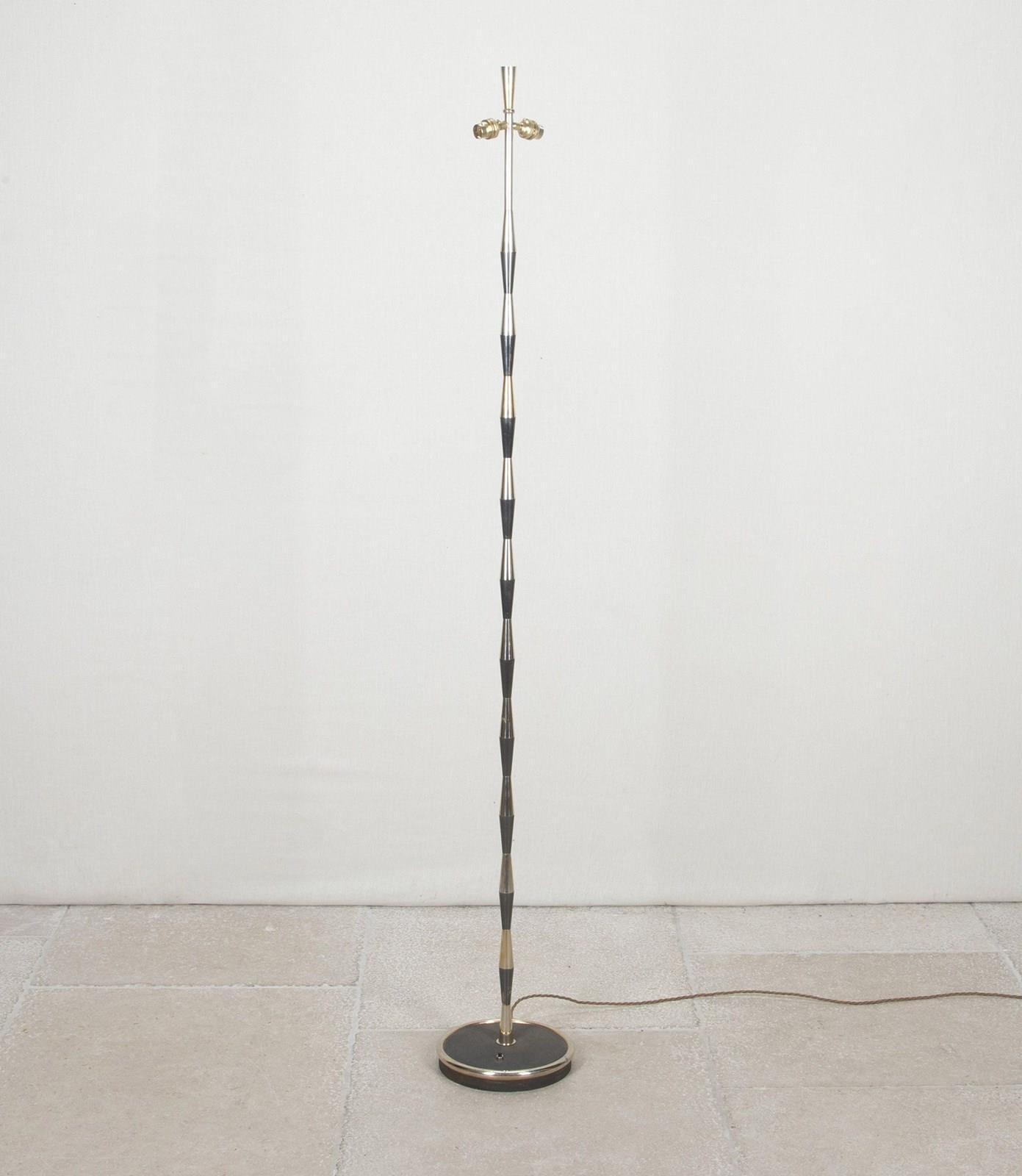 Mid-20th Century French floor lamp with gunmetal and brass striped finish.