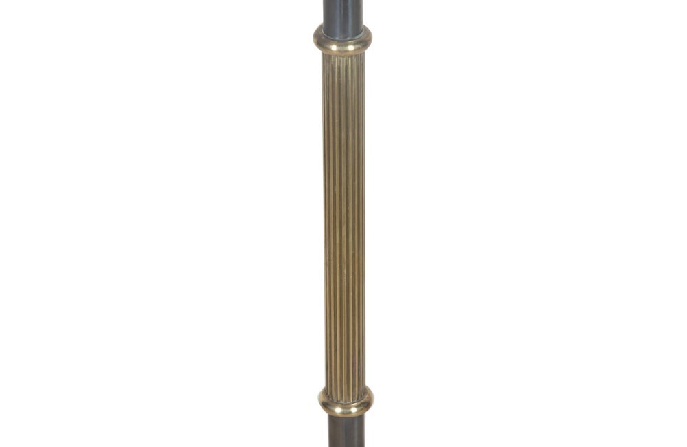 Mid-20th Century French telescopic floor lamp with reeded stem in brass and gunmetal finish.