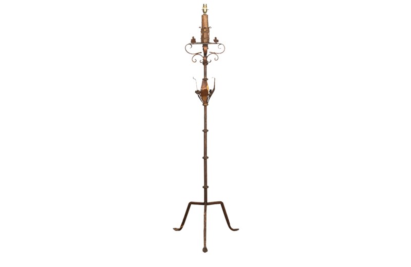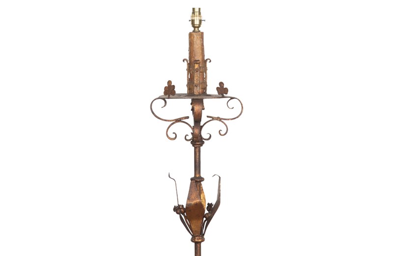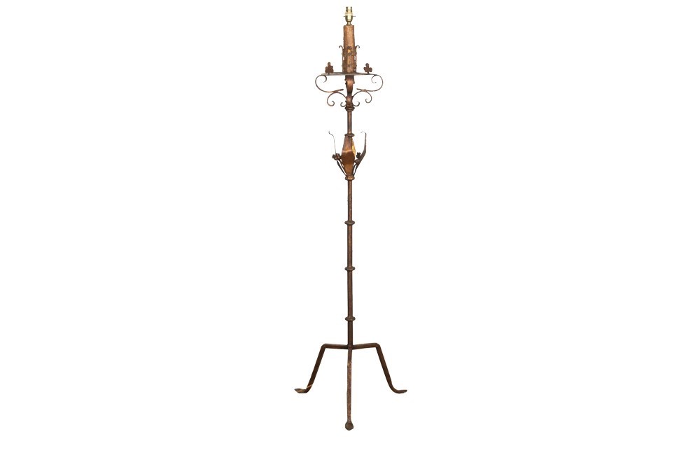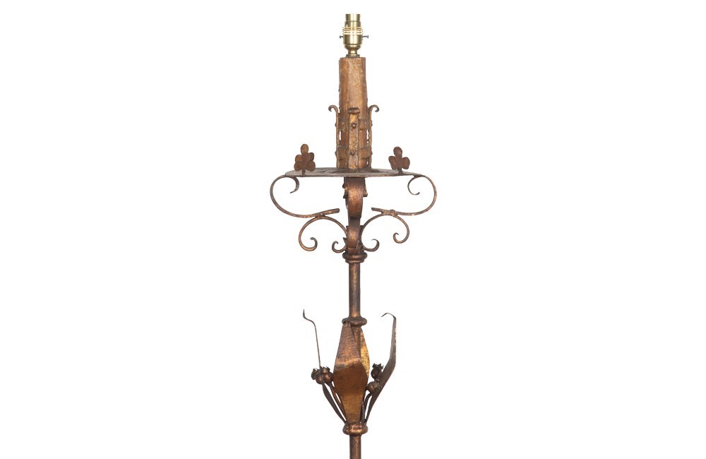 1950's Spanish gilt iron floor lamp of great decorative design.