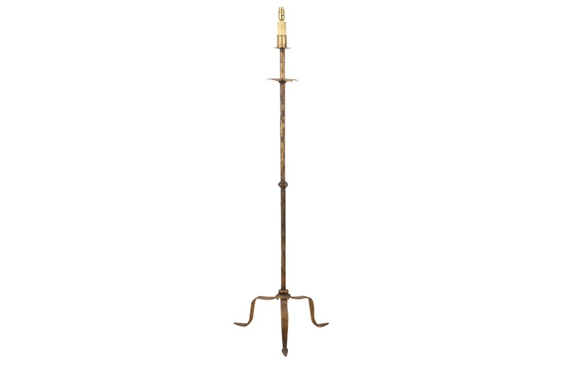 1950's Spanish gilt iron floor lamp of great decorative design.