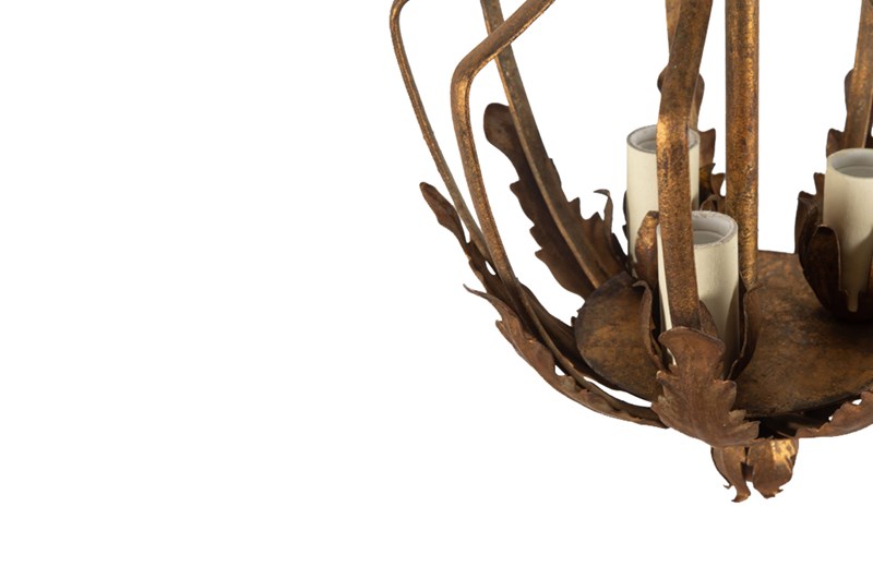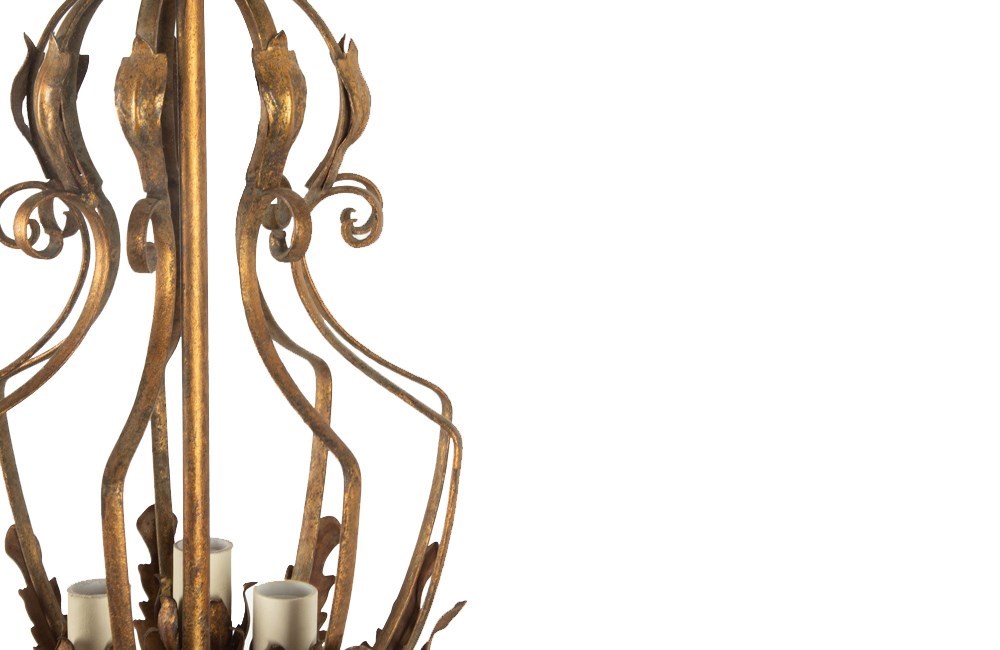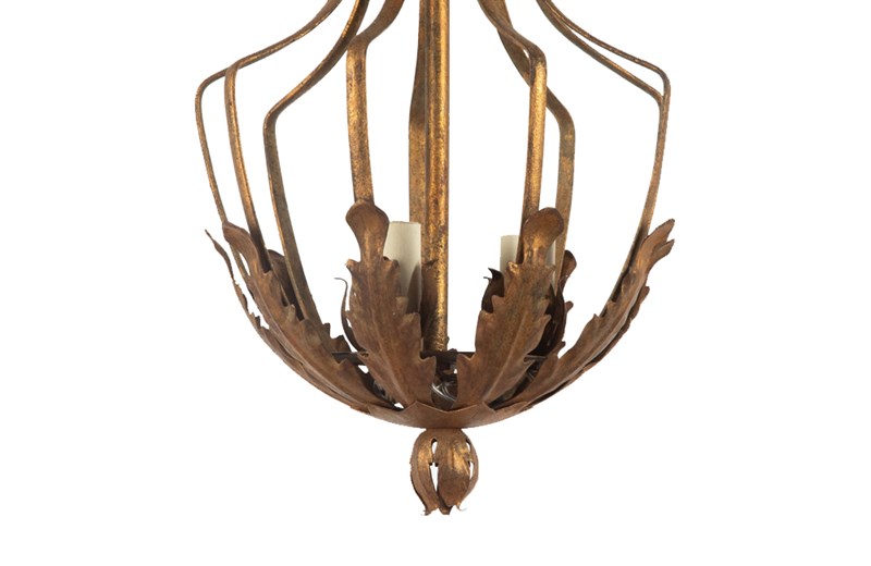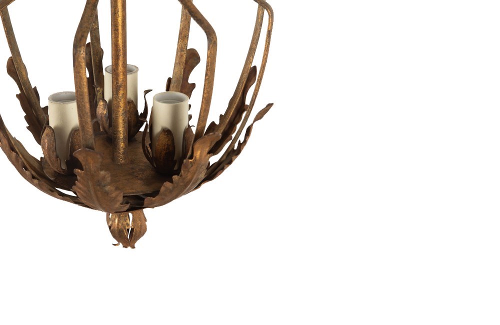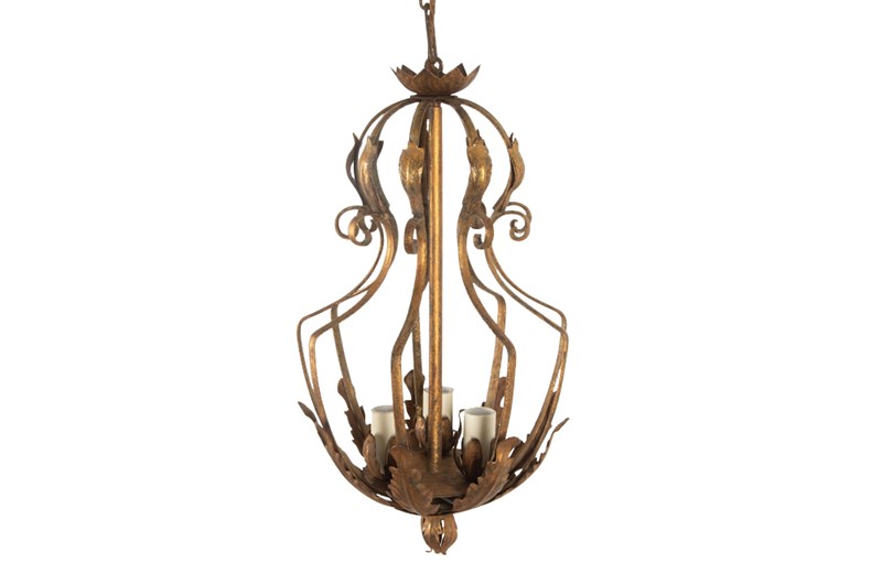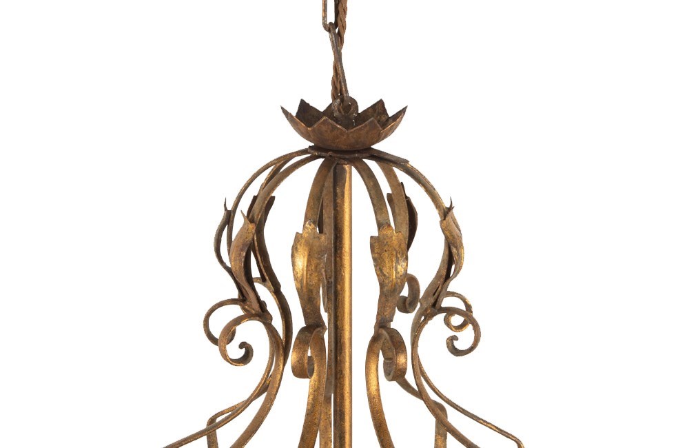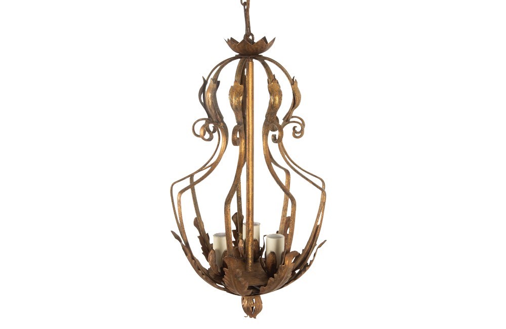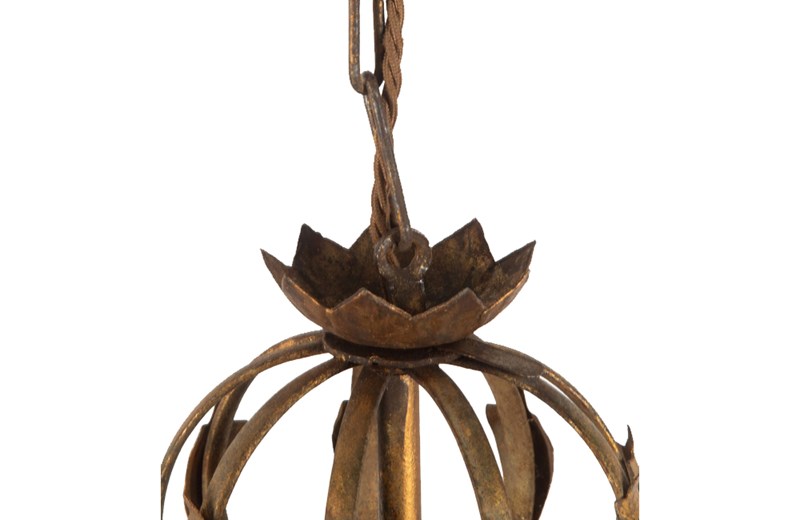 Spanish mid century giltmetal, chandelier / lantern of unusual design.