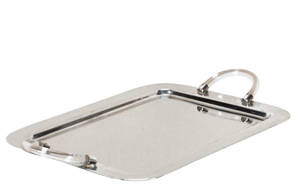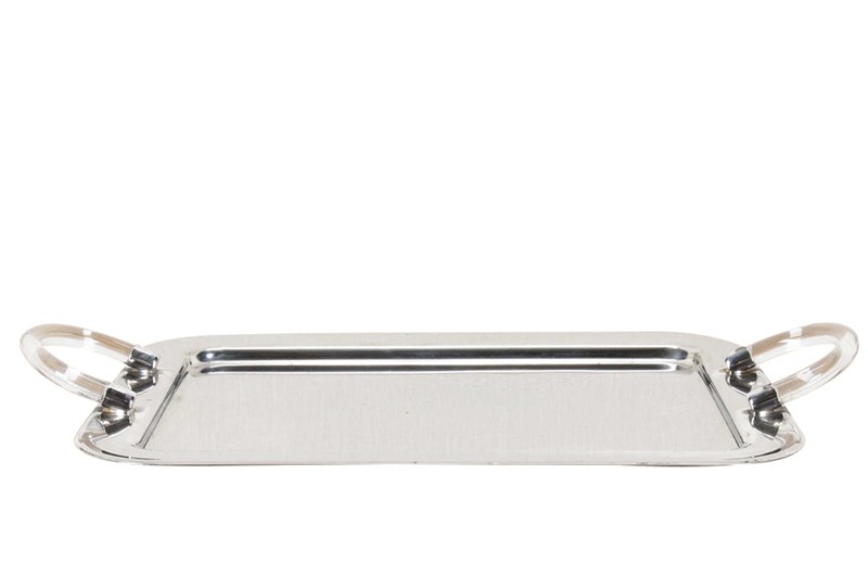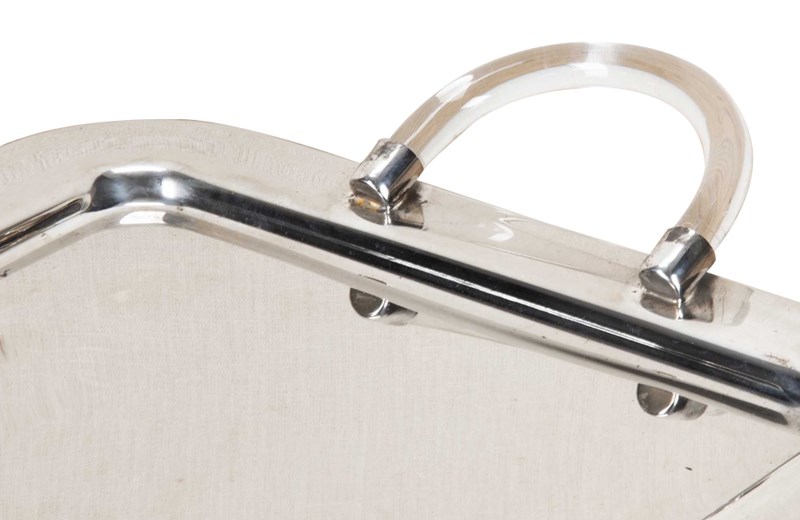 Mid-Century Italian Silverplate Tray With Lucite Handles