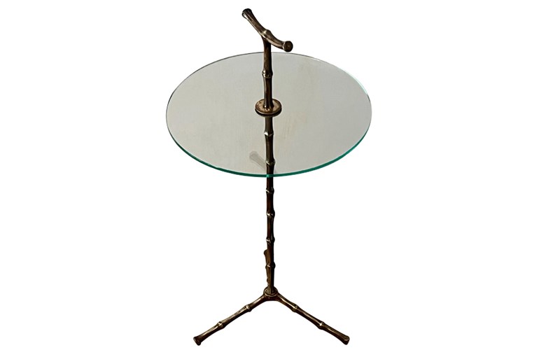 Very stylish and elegant Mid-Century French solid brass and clear glass martini or side table by Maison Bagues. Circa 1960.
