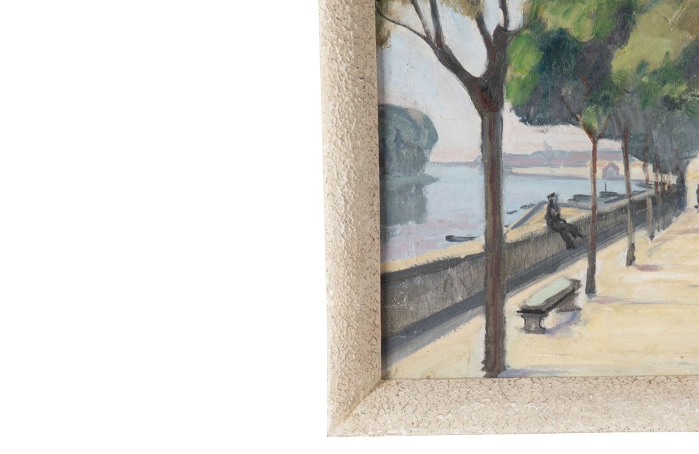 Mid Century Oil Painting 'Promenade Beneath Parasol Pines' By Jean Perret