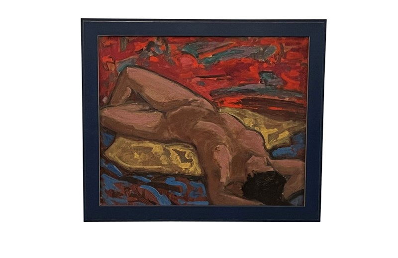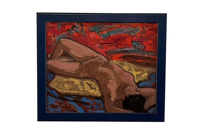 Mid-Century Oil Painting 'Reclining Nude' By Jean Perret