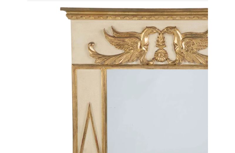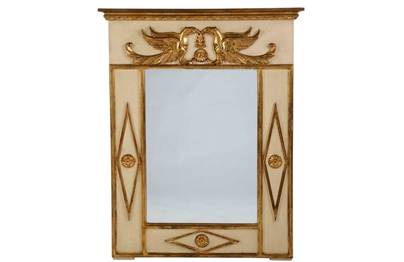 Decorative, French painted and gilt parcel mirror in the Neo-Classical style decorated with stylised eagles..