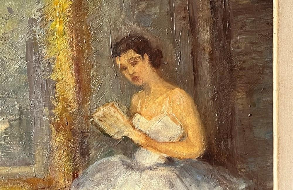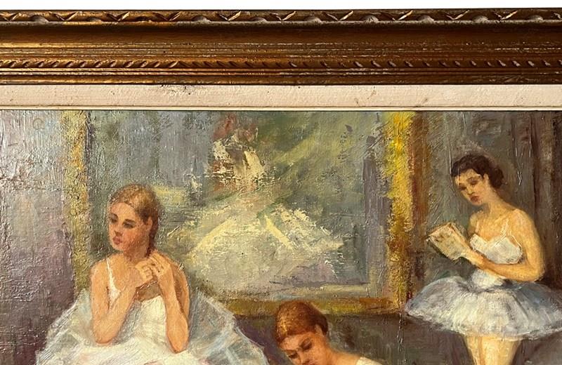Inscribed to the rear with the title of the painting 'Les Danseuses' [Translation: 'The Dancers] and the name of the artist, Mireille Bousquet