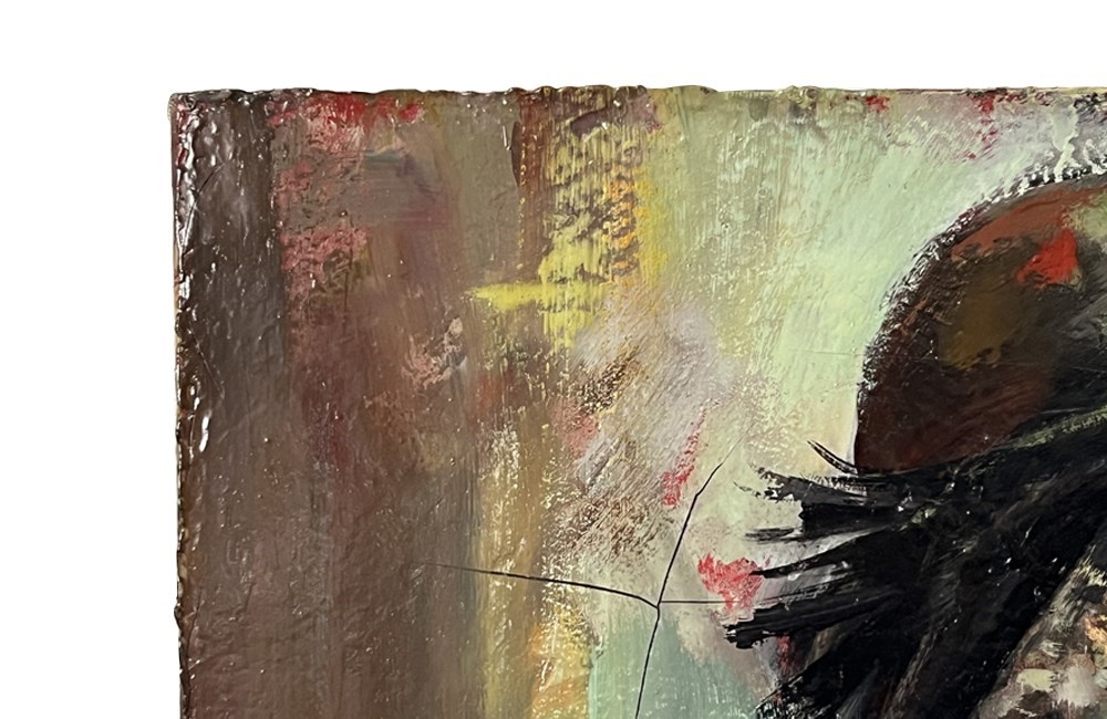 Signed by the artist to the lower left. Unframed and unrestored. Some stable cracking to the thickly applied paint.
