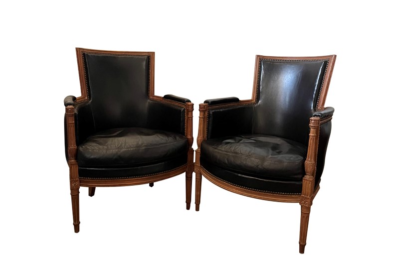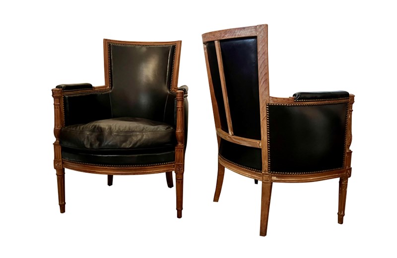 Pair Of 19Th Century French Directoire Leather Armchairs
