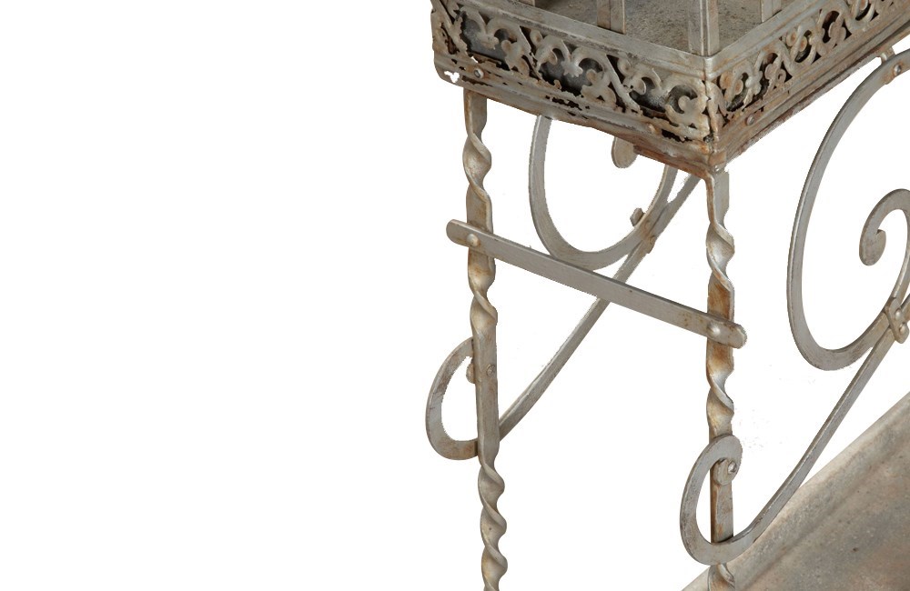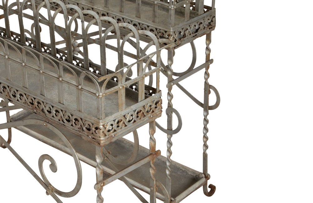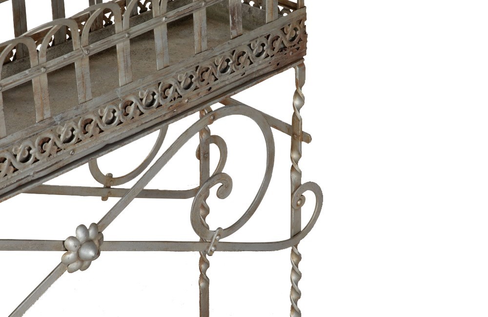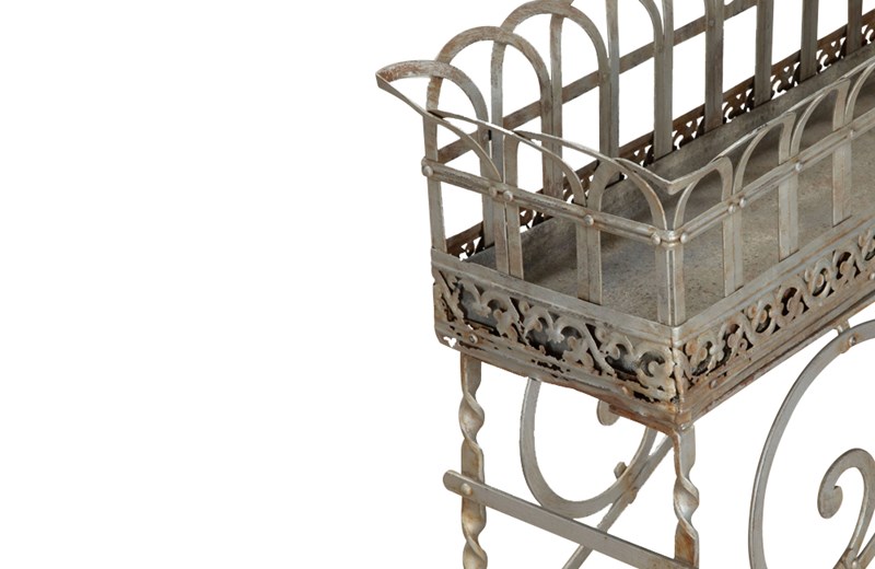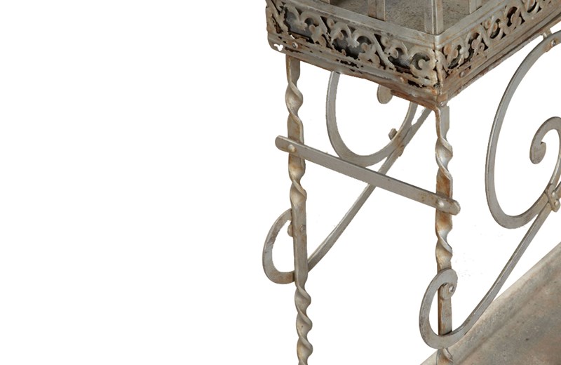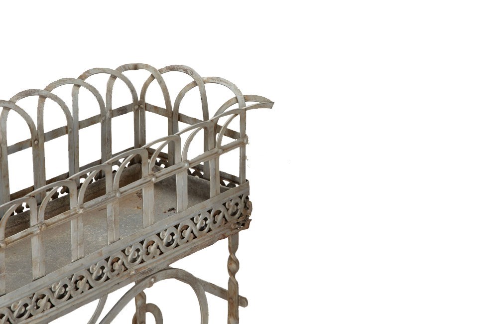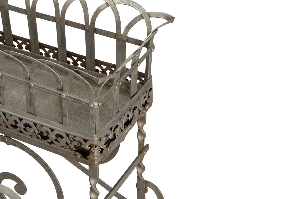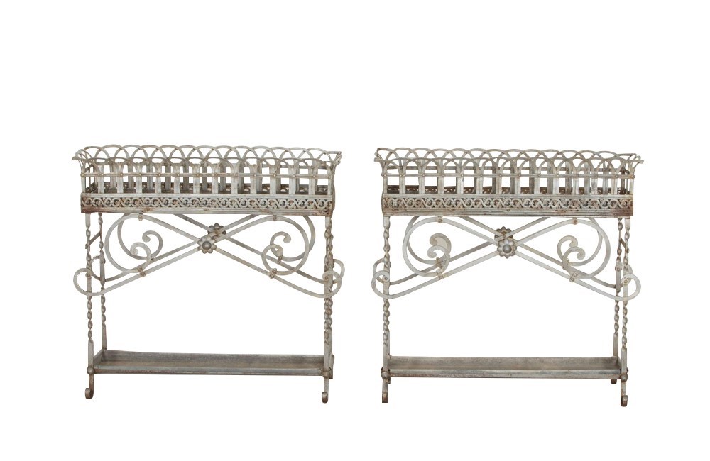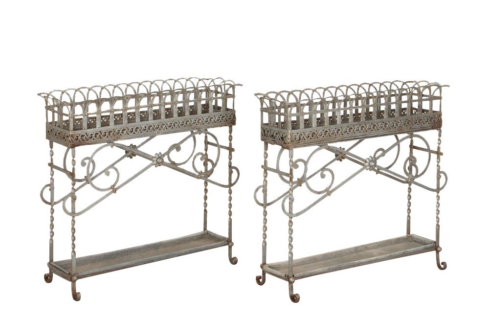 Pair of rare late 19th or early 20th Century French orangery iron plant stands with upper and lower zinc liners.