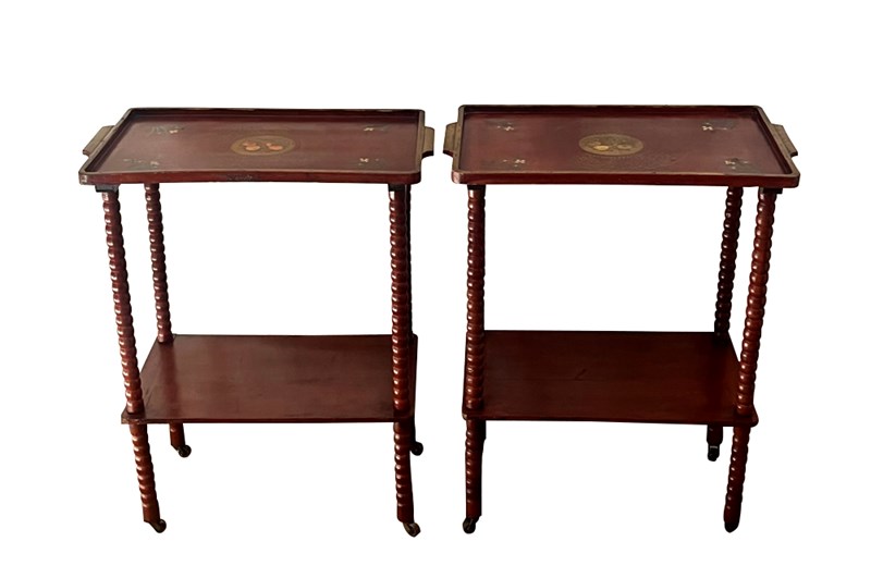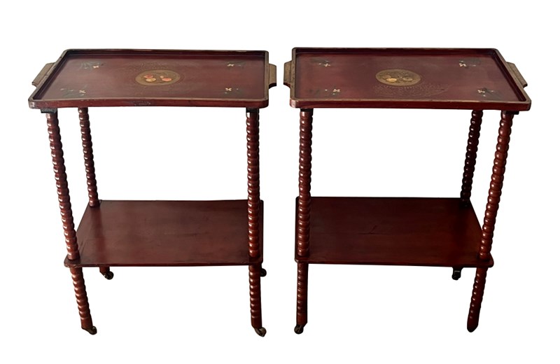 Pair Of 20Th Century Chinoiserie Bobbin Side Tables