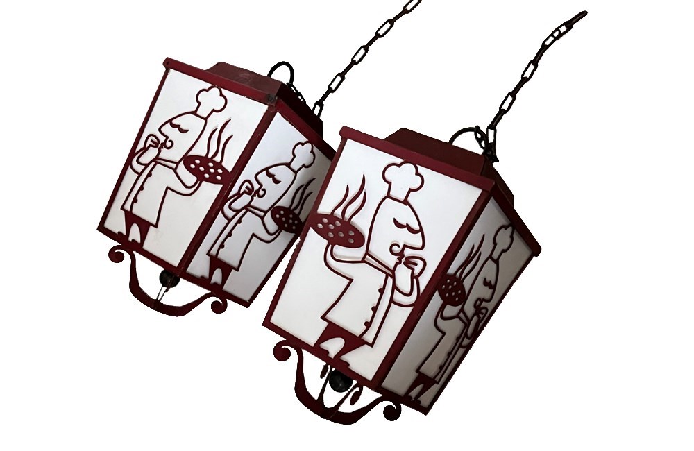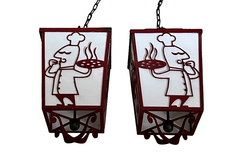 Pair Of 20Th Century Italian Iron Pizza Chef Lanterns