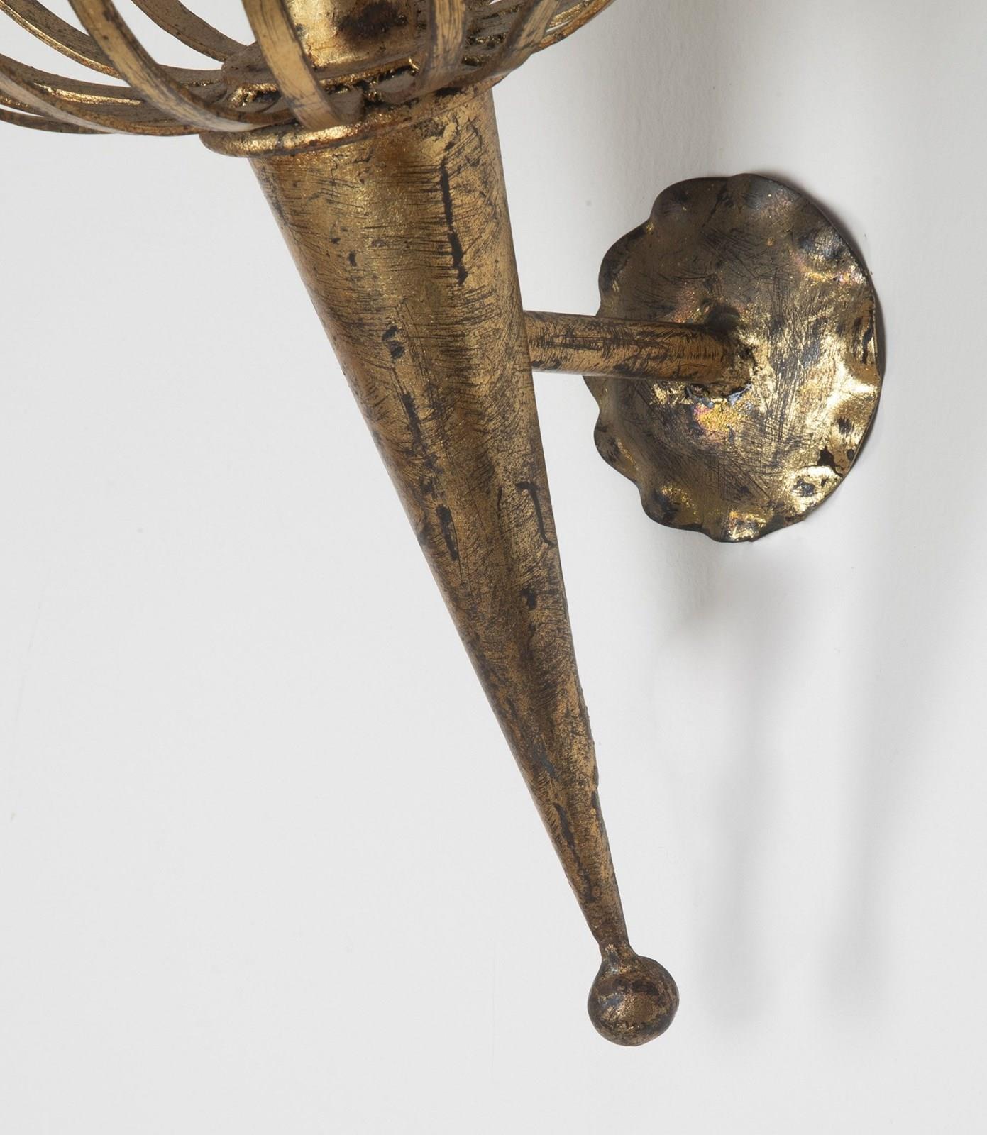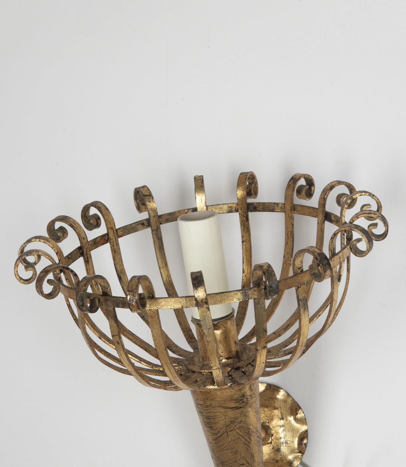 Pair Of 20Th Century Spanish Gilt Metal Torchere Wall Lights