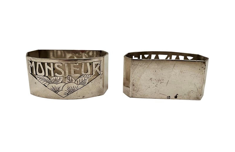 Pair Of Art Deco Madame & Monsieur Silver Plate Napkin Rings
