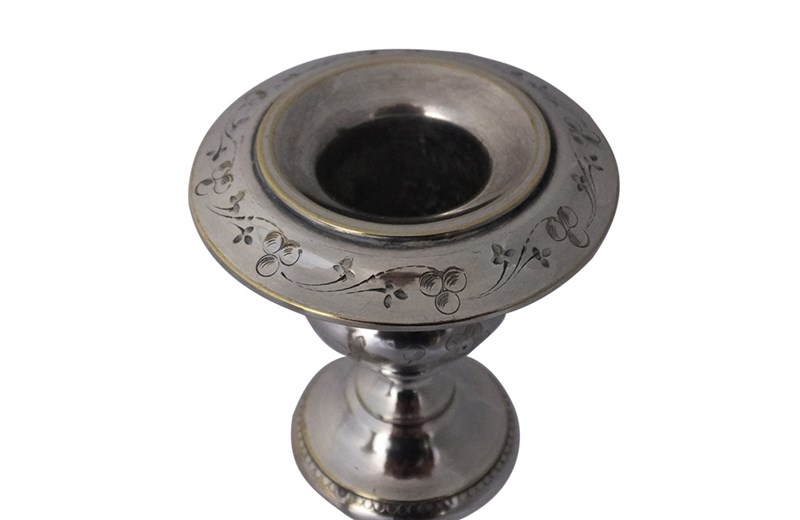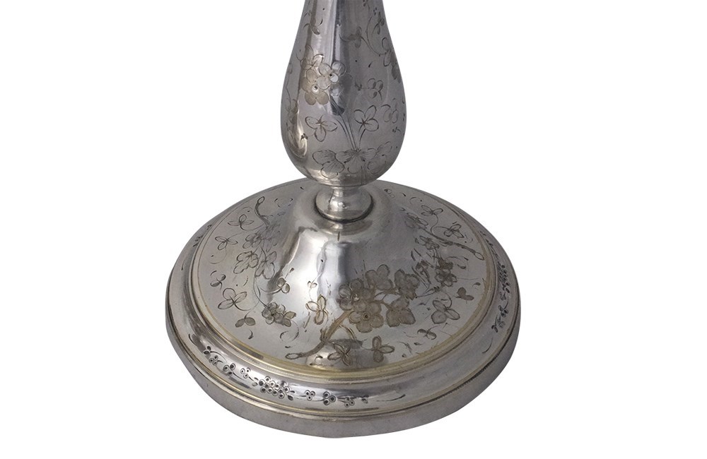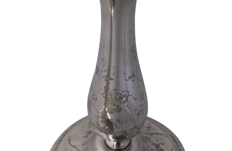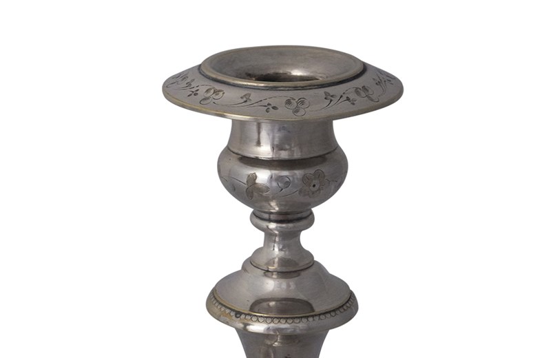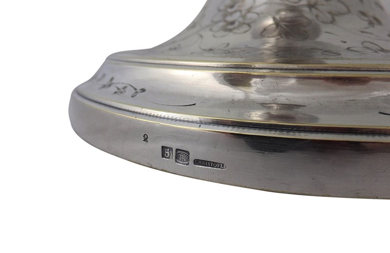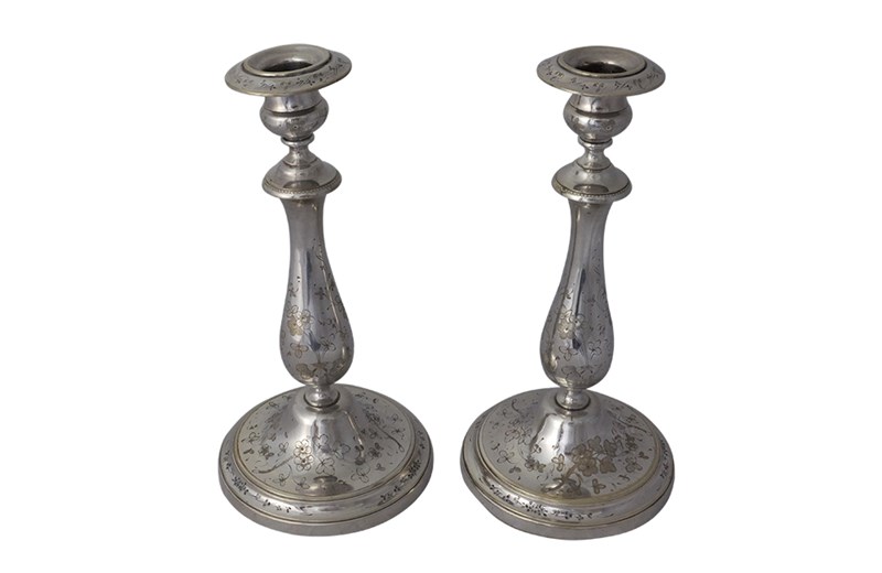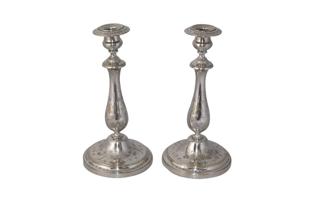 These pretty candlesticks, engraved with floral decoration, bear the earlier Christofle mark.