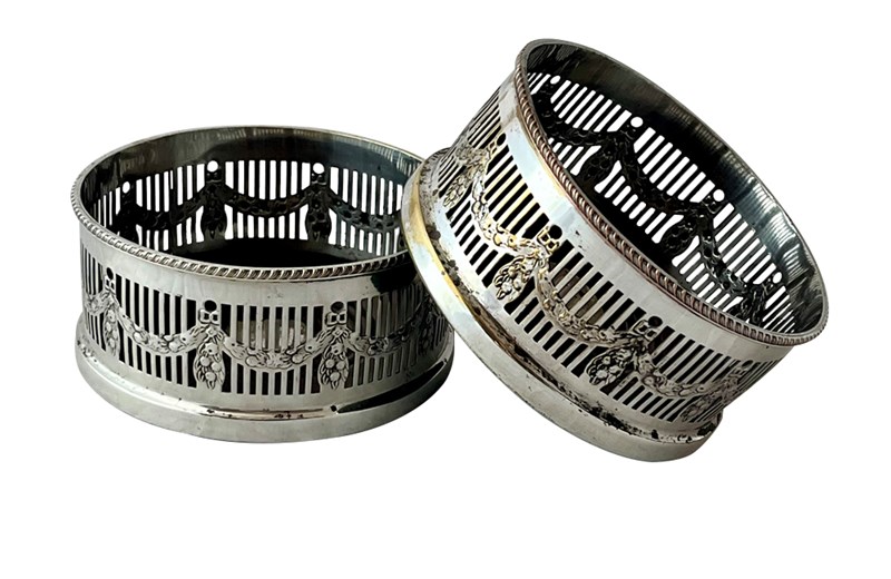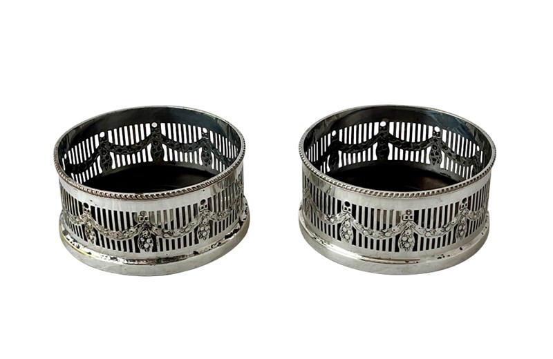 Pair Of English Silver Plate Neo-Classical Revival Wine Coasters