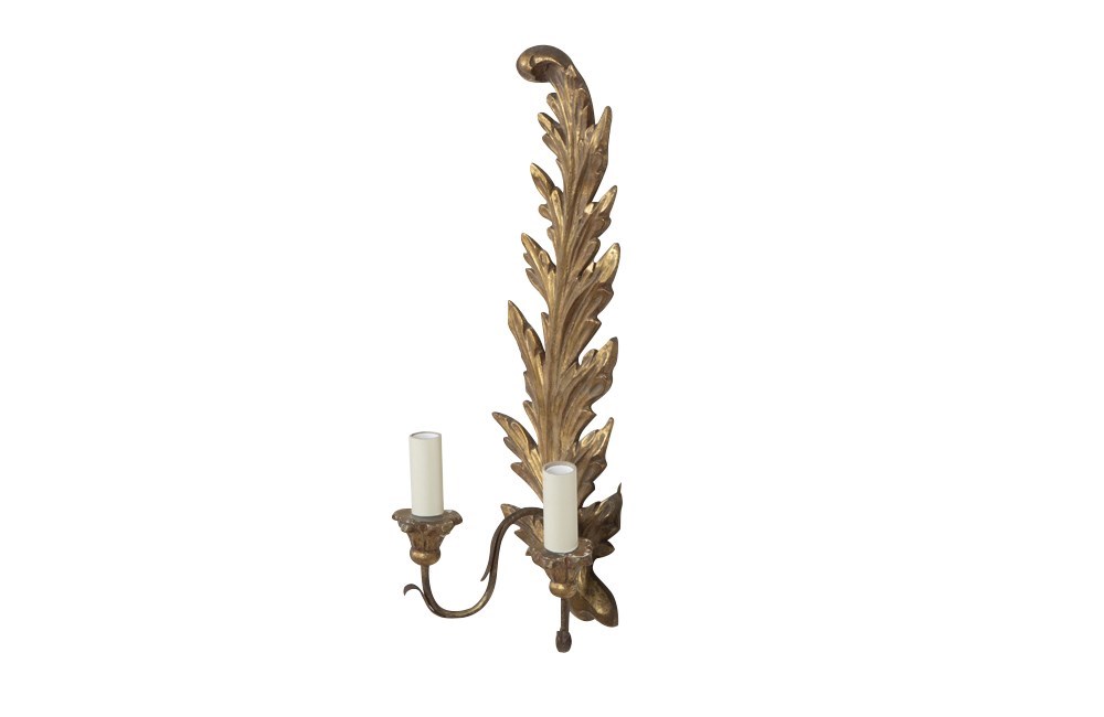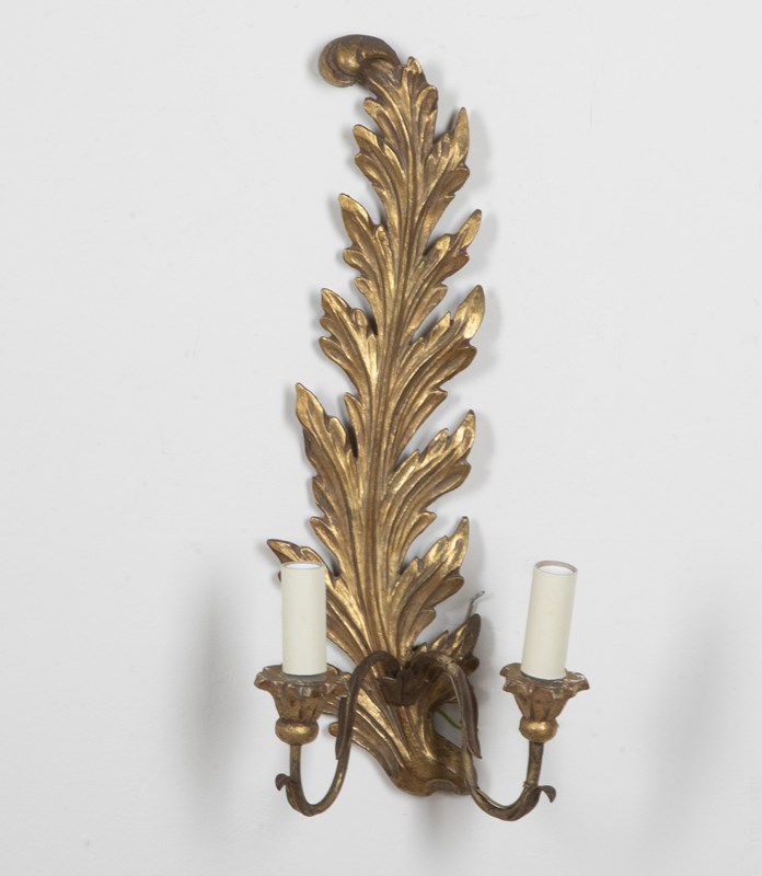 Pair Of Italian Giltwood Feather Plume Wall Lights