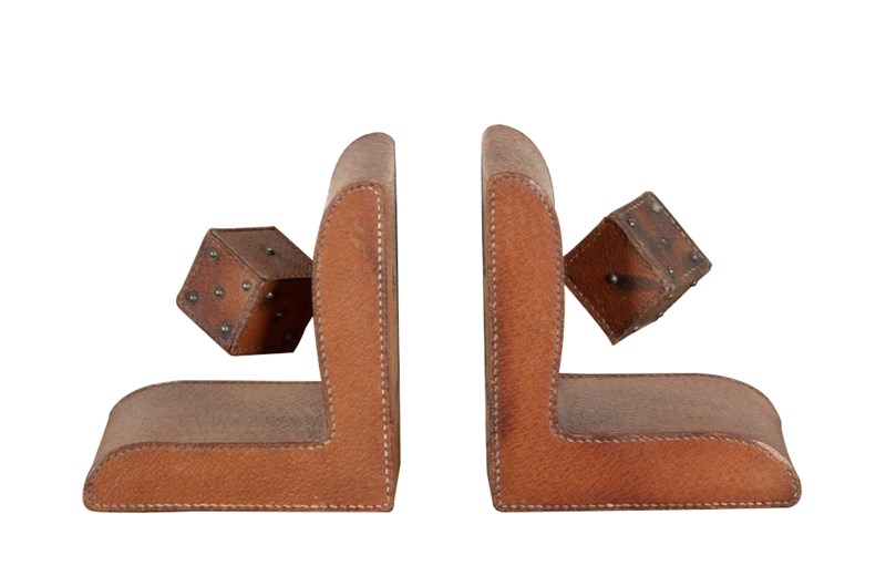 Pair Of Jacques Adnet Leather Bookends