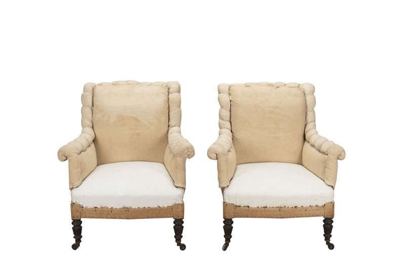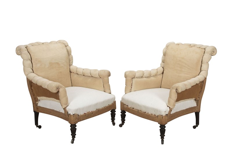 Pair Of Large 19Th Century French Scroll Back Armchairs