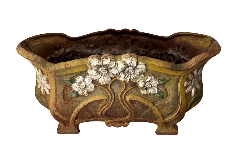 Pair of late 19th Century French polychrome cast iron jardinieres.