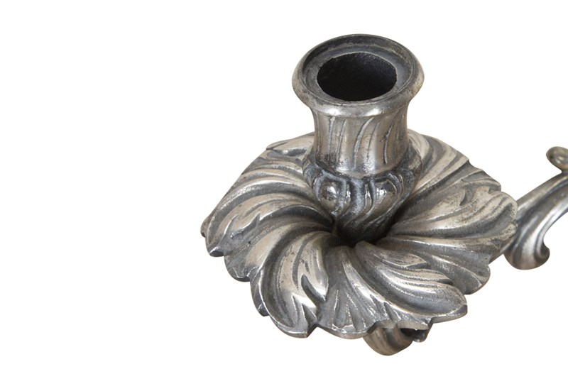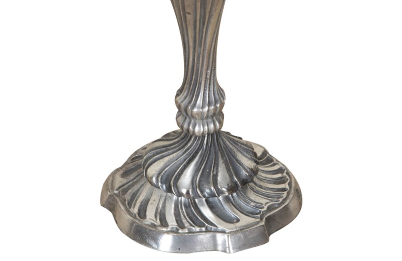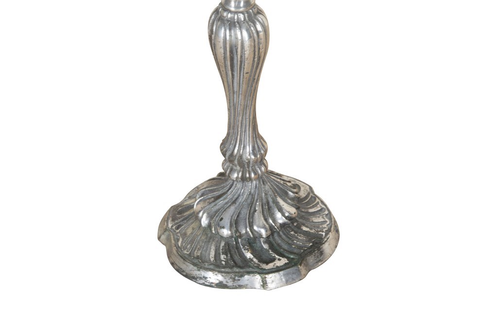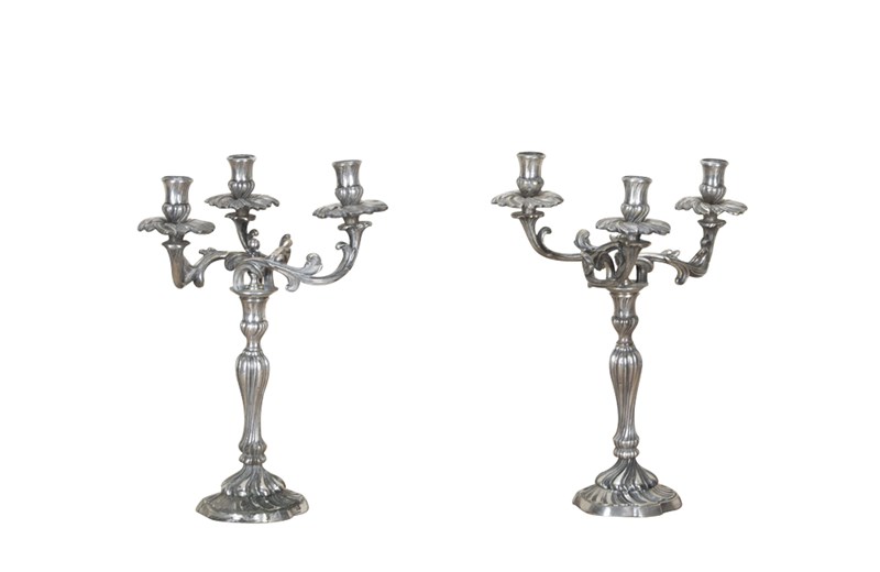 Pair of late 19th Century French worn silver plated candleabras in the Rococo style.