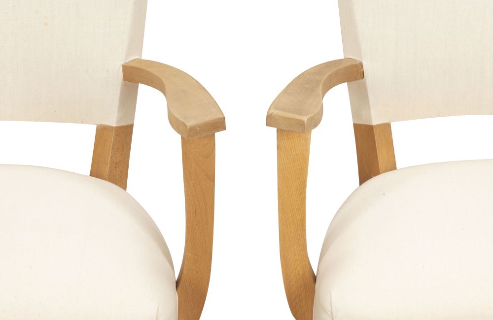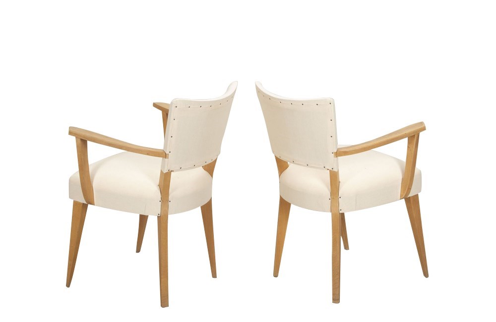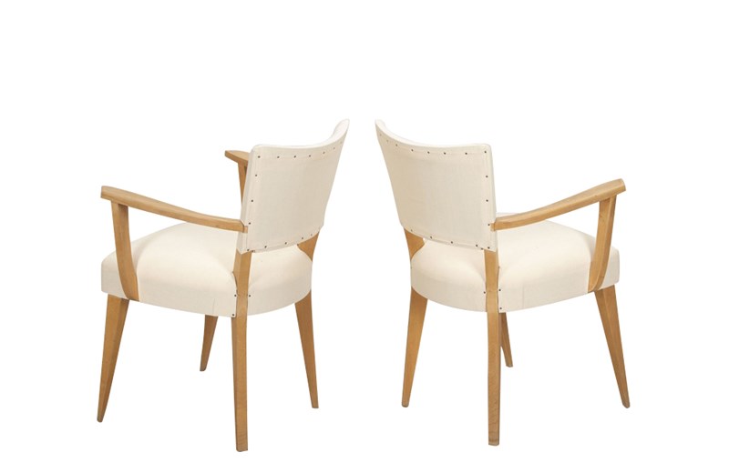 Pair of mid-20th Century French pale beech bridge chairs of stylish and unusual form. Circa 1950