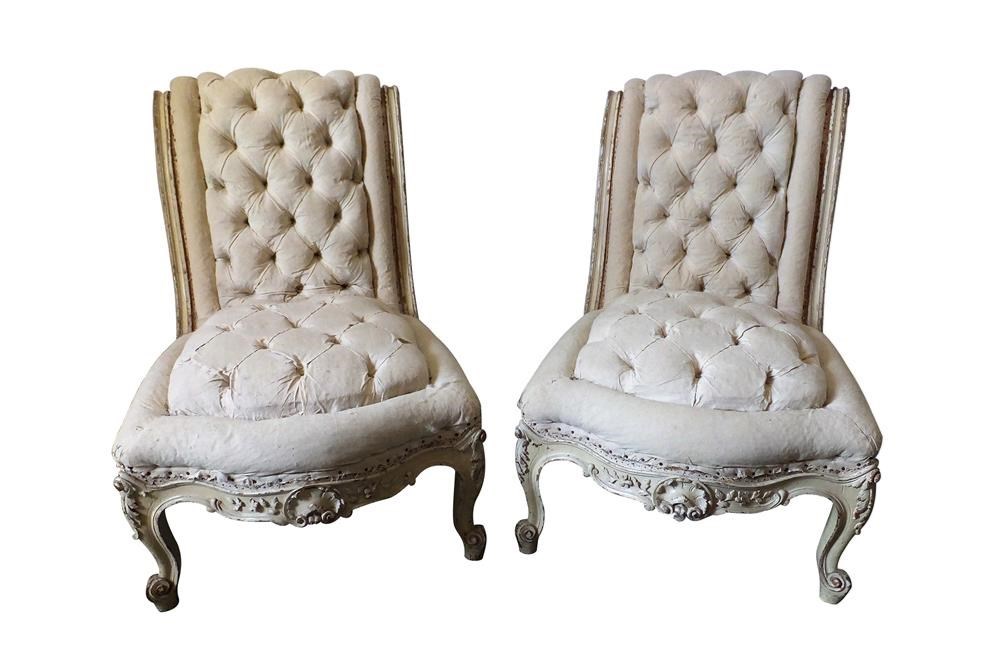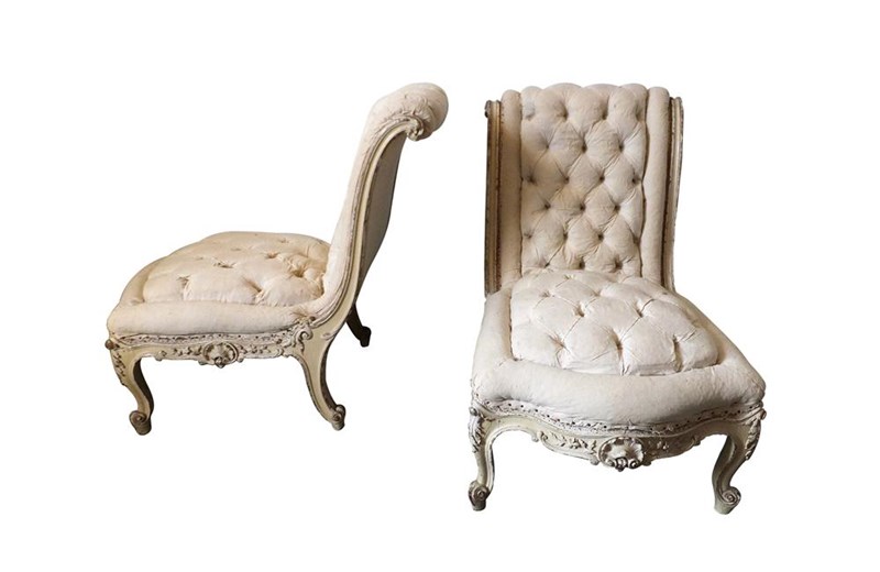 Pair of roll back, Louis XV Revival chauffeuses of beautiful form. 19th century, [later paint], France.