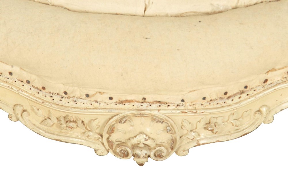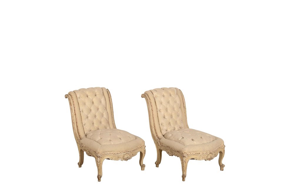 Pair of scroll back, Louis XV Revival chauffeuses of beautiful form. 19th century, [later paint], France.