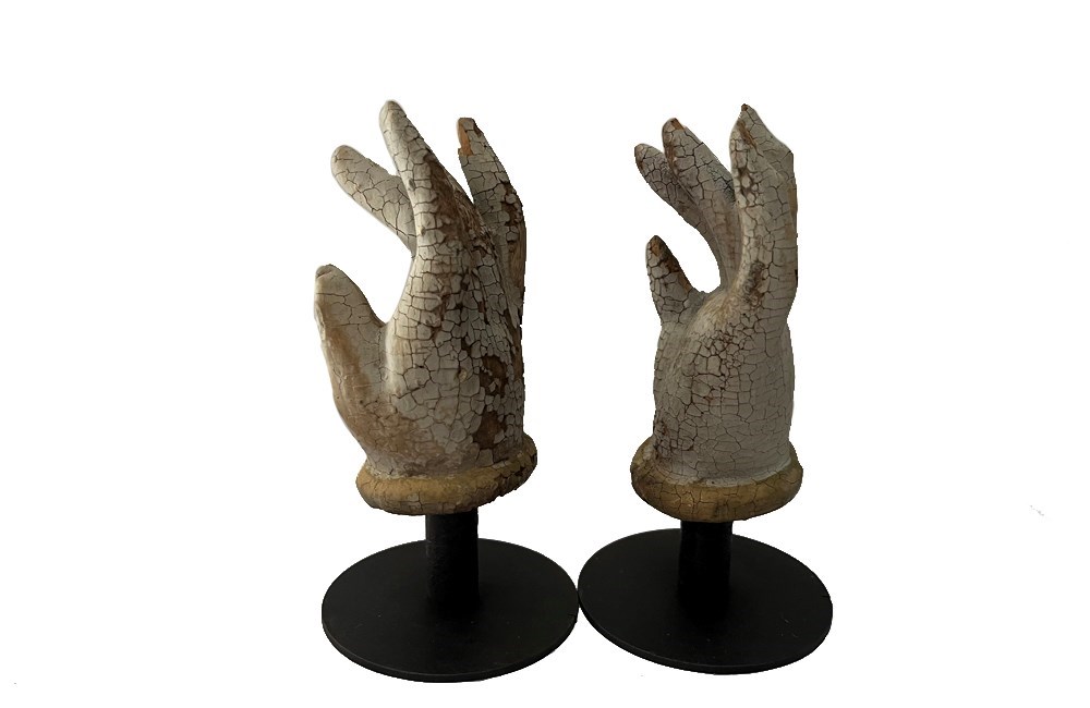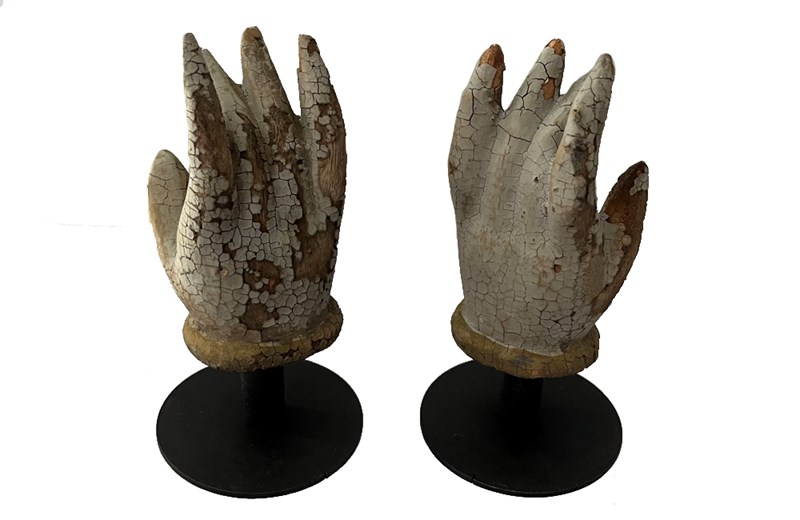 Charming pair of small early 19th Century French polychrome carved hands.