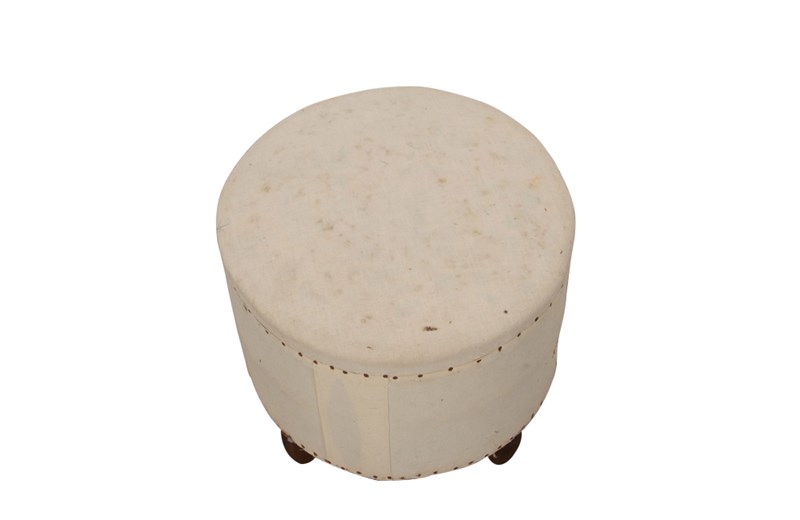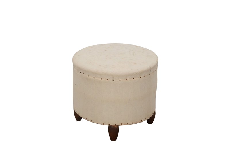 Round Art Deco stool / pouffe with shaped feet. Ready for recovering. Circa 1930