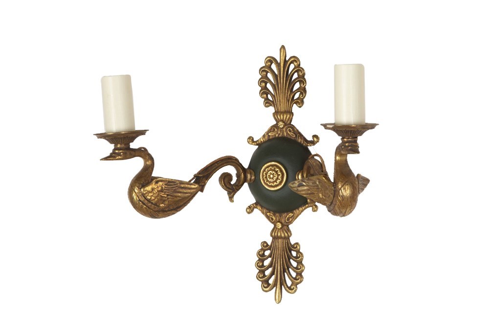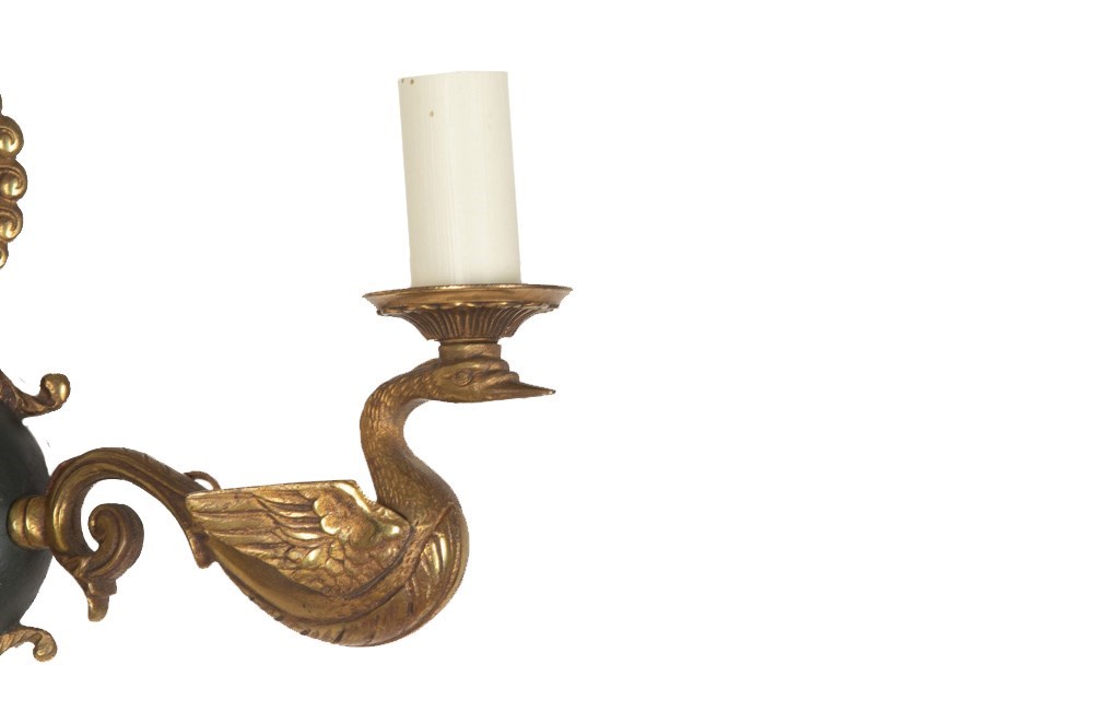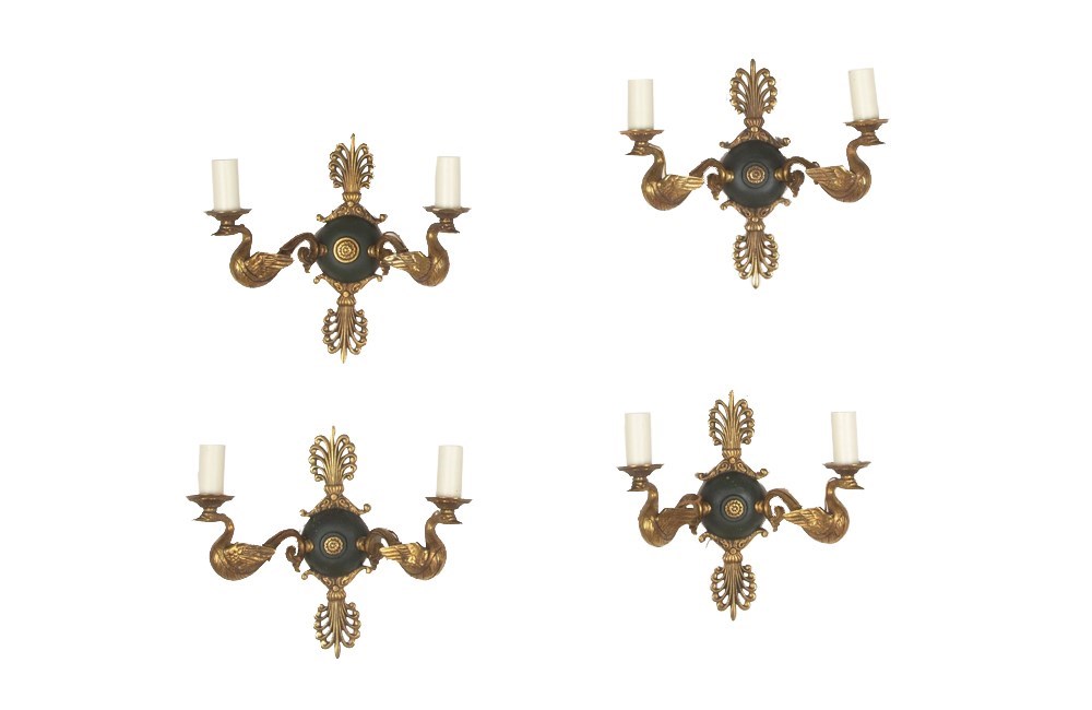 Set of four elegant 20th Century French bronze wall sconces in the Empire style.