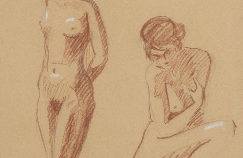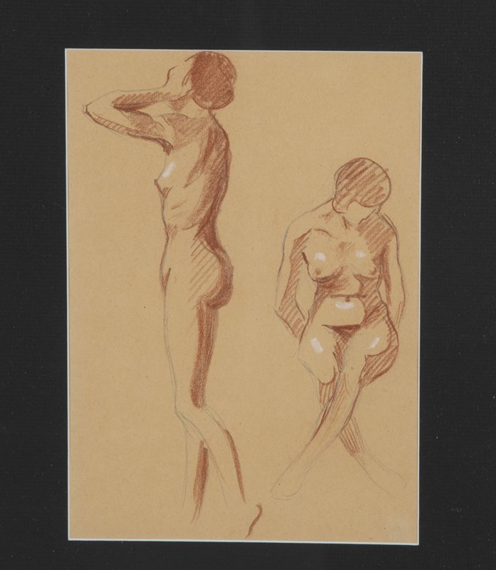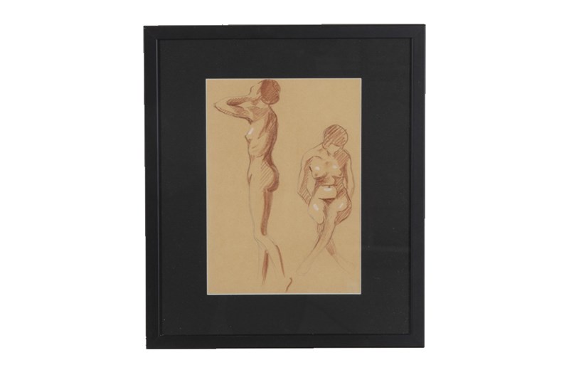 Set of three 20th Century French sanguine life nude studies. Circa 1930