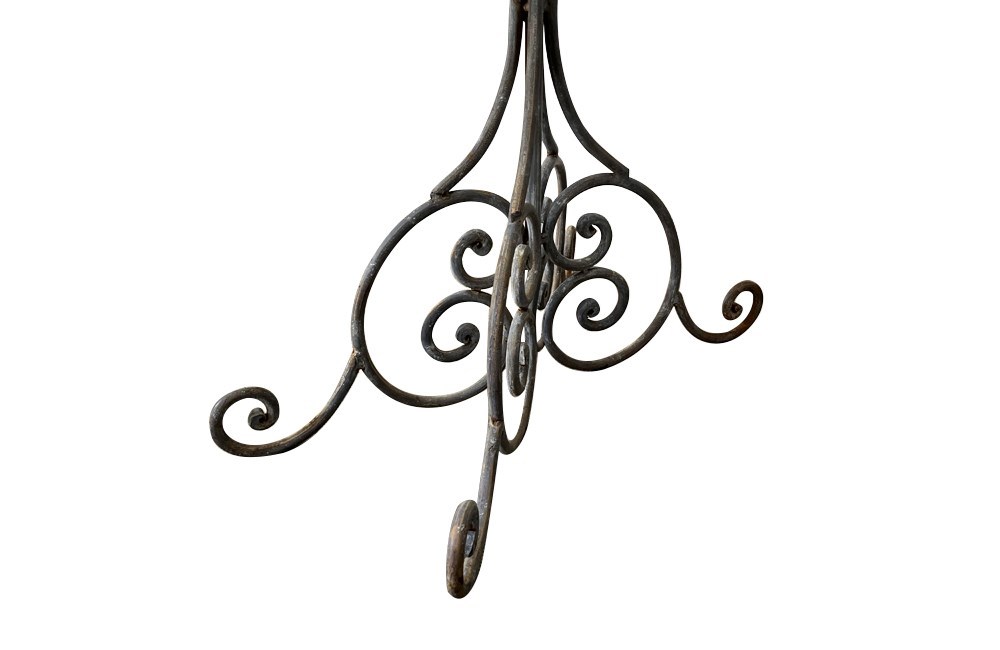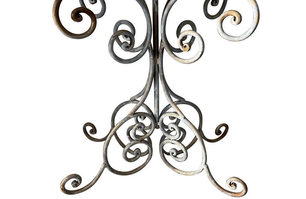 Sturdy and heavy piece with scrolling to base and upright supports.