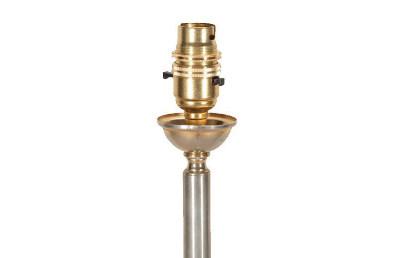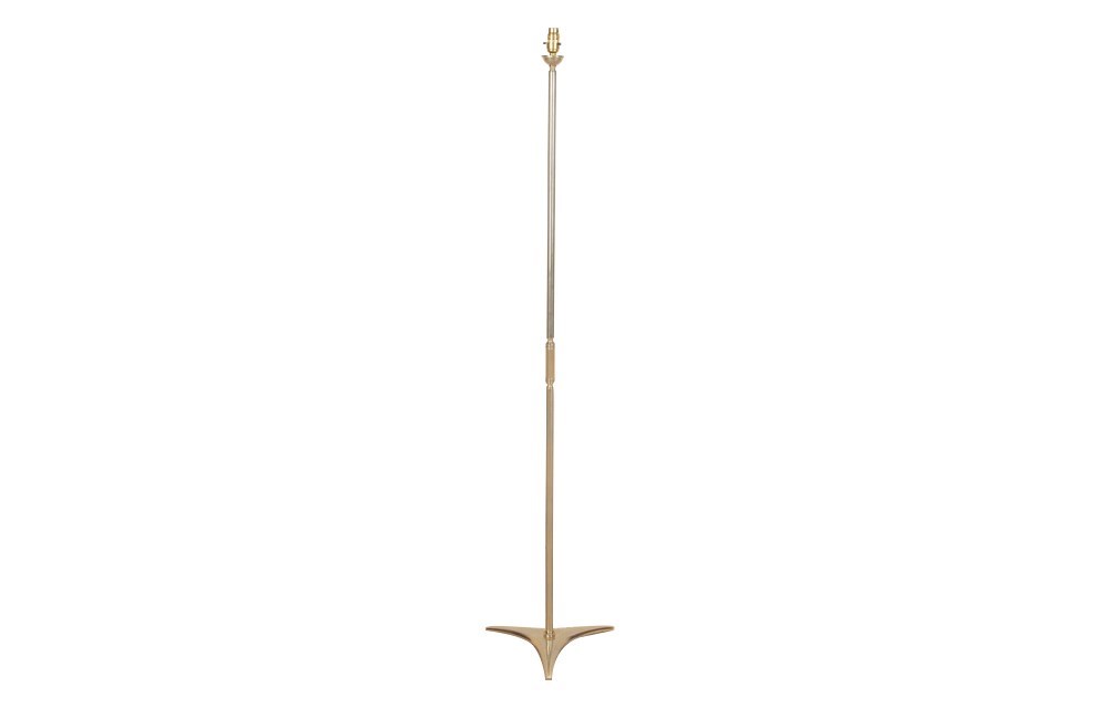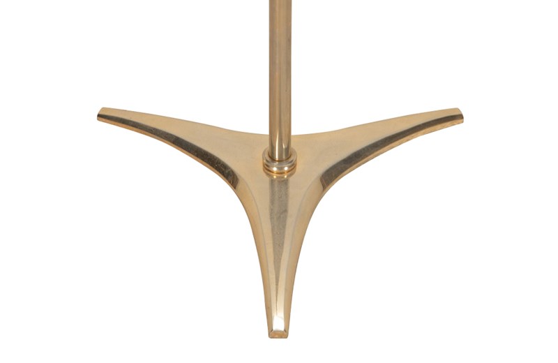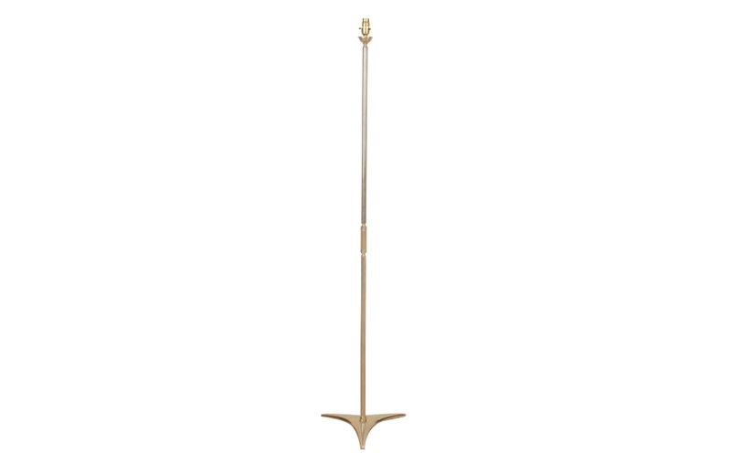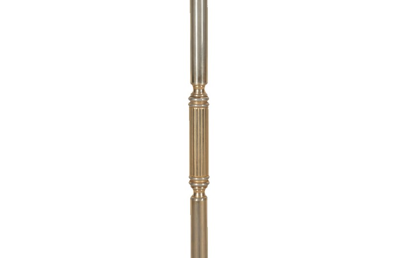 A chic Mid-Century French polished 'gun metal' patina metal and brass floor lamp.