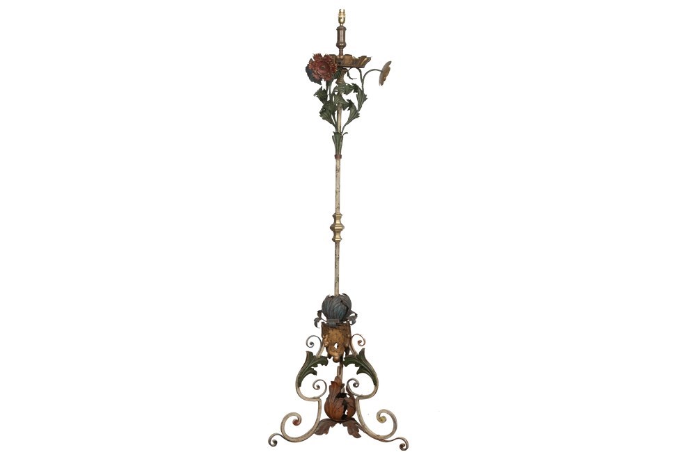 Tall Italian Polychrome Iron Floor Lamp