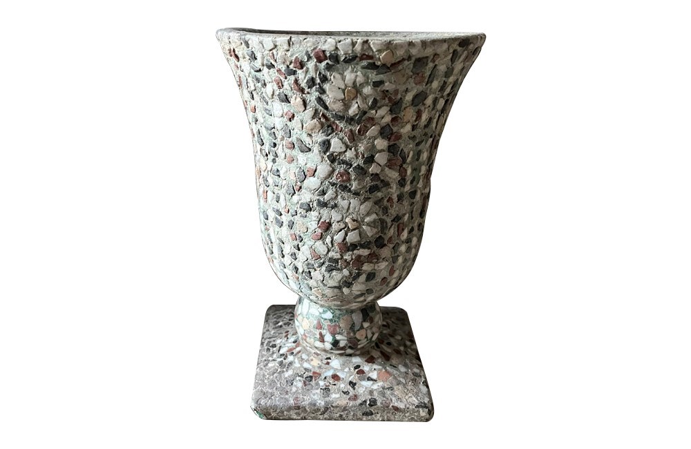 Decorative near pair of 20th Century French pebble mosaic planters.