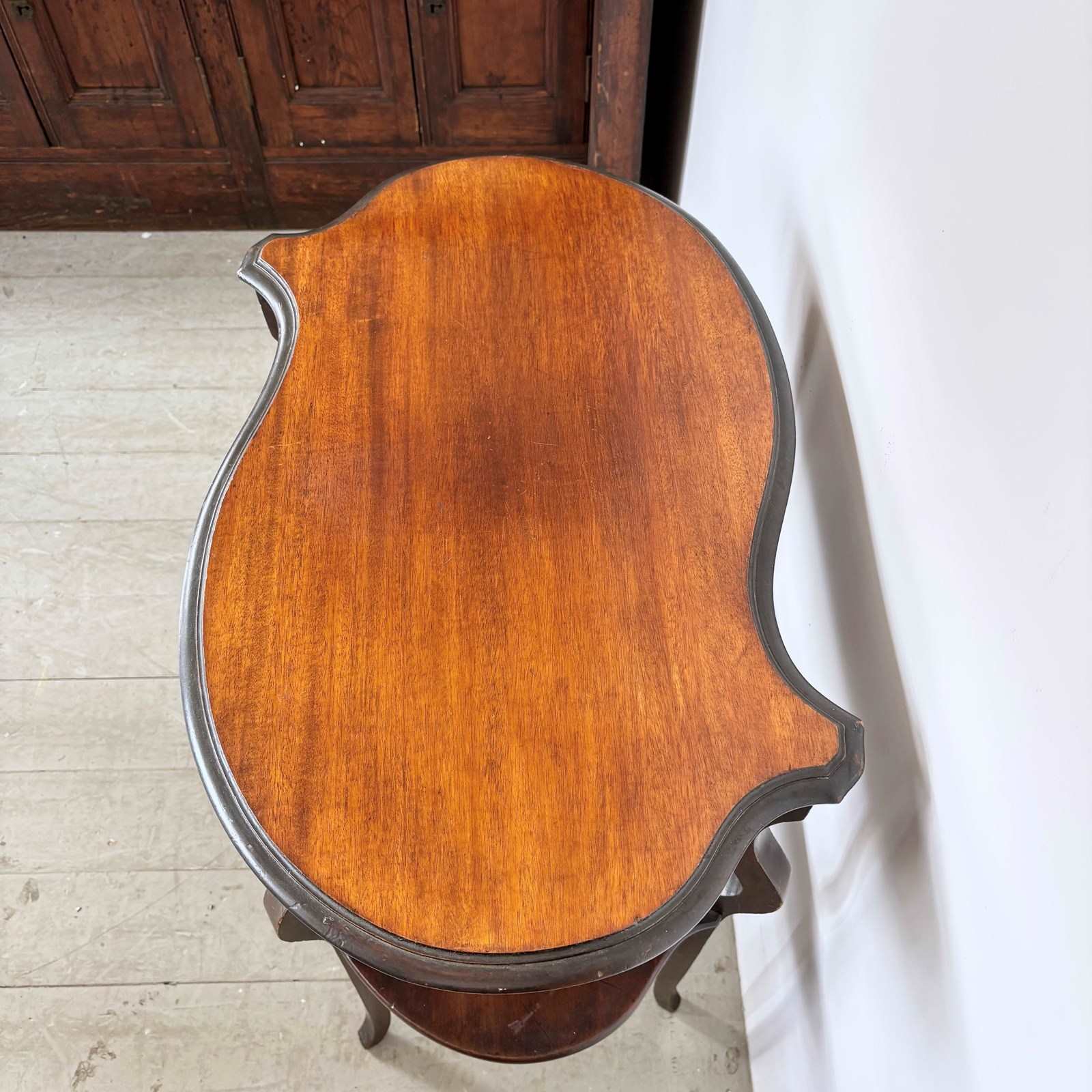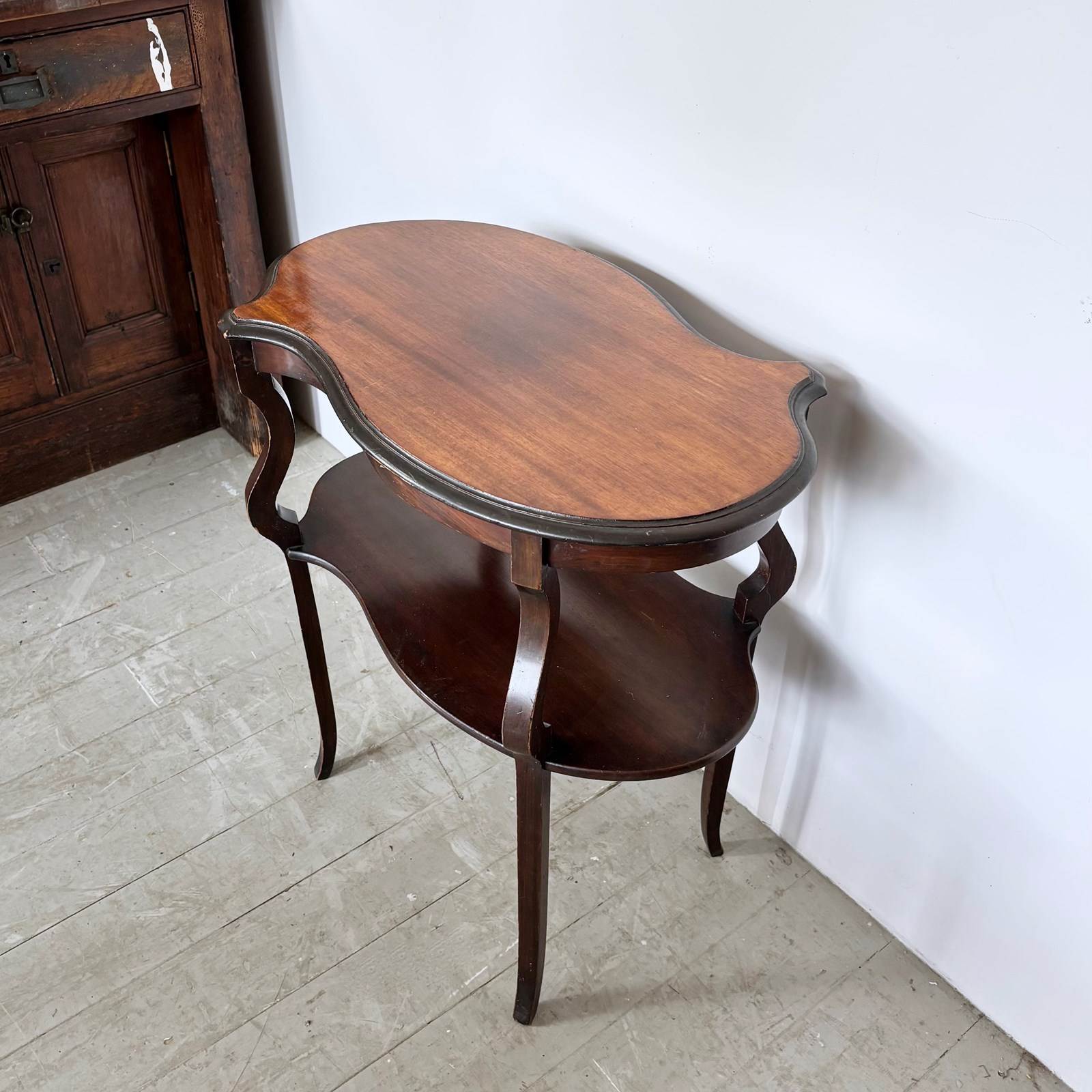 Two tier Art Nouveau style wooden side table.